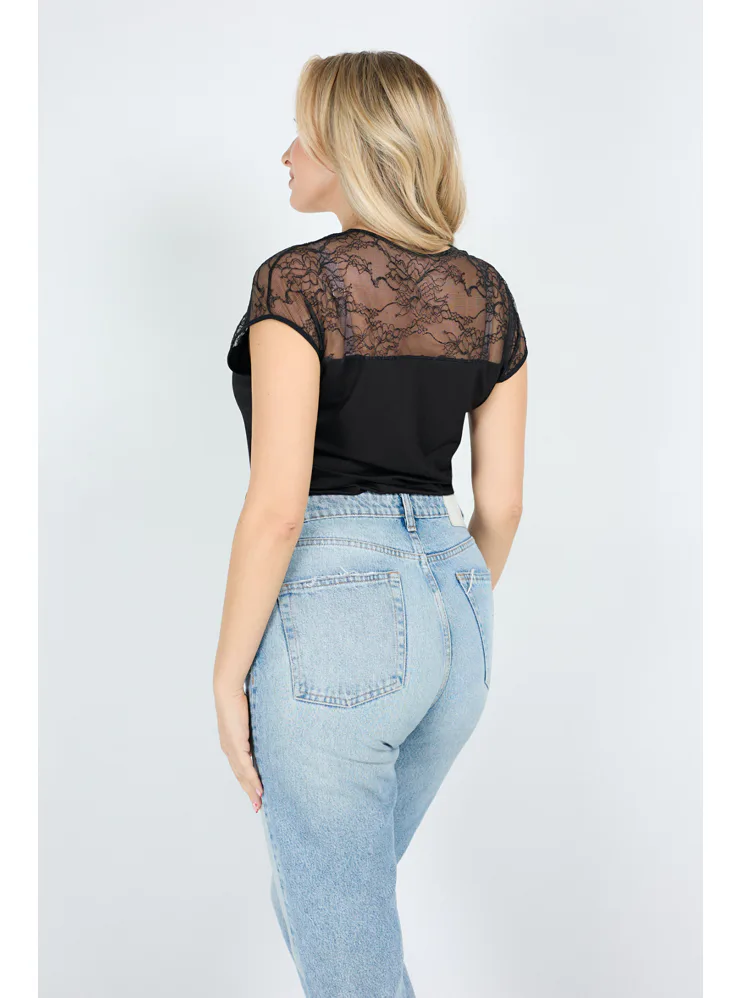 Dámské tričko s krajkou černé