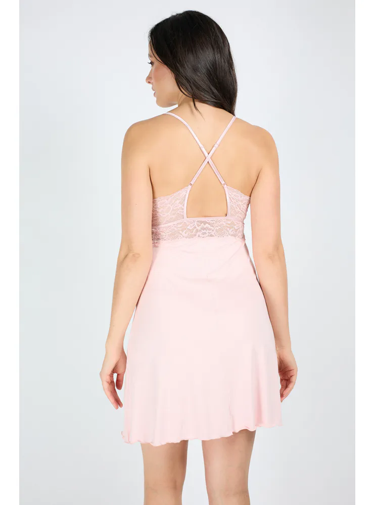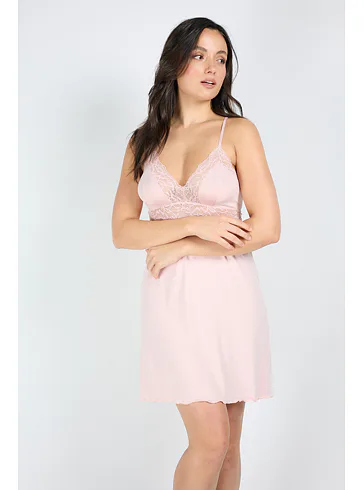 Růžová noční košile zaujme krajkovými detaily v oblasti výstřihu a v pase. Úzká ramínka se nezařezávají a poskytují potřebnou oporu. Košile upoutá pozornost výstřihem do písmene V. Vyrobena je z příjemné viskózy, která jemně splývá na těle a vyniká svou jemností a měkkostí. Ideální pro večerní relax a pohodlný spánek. Pořiďte si na spaní viskózovou noční košili.