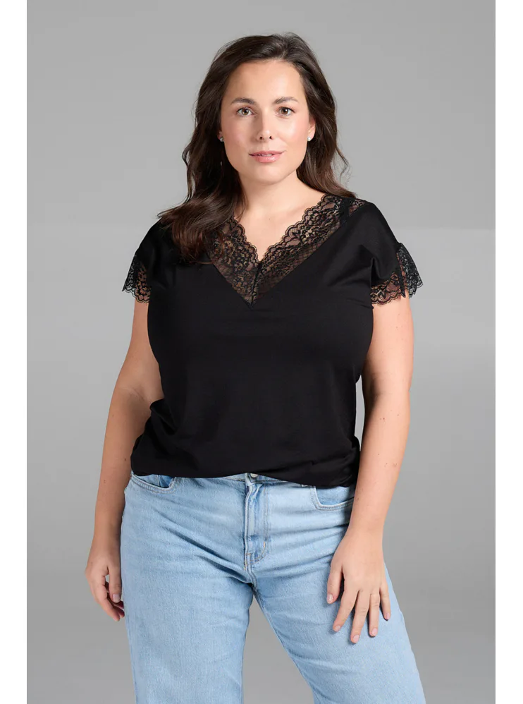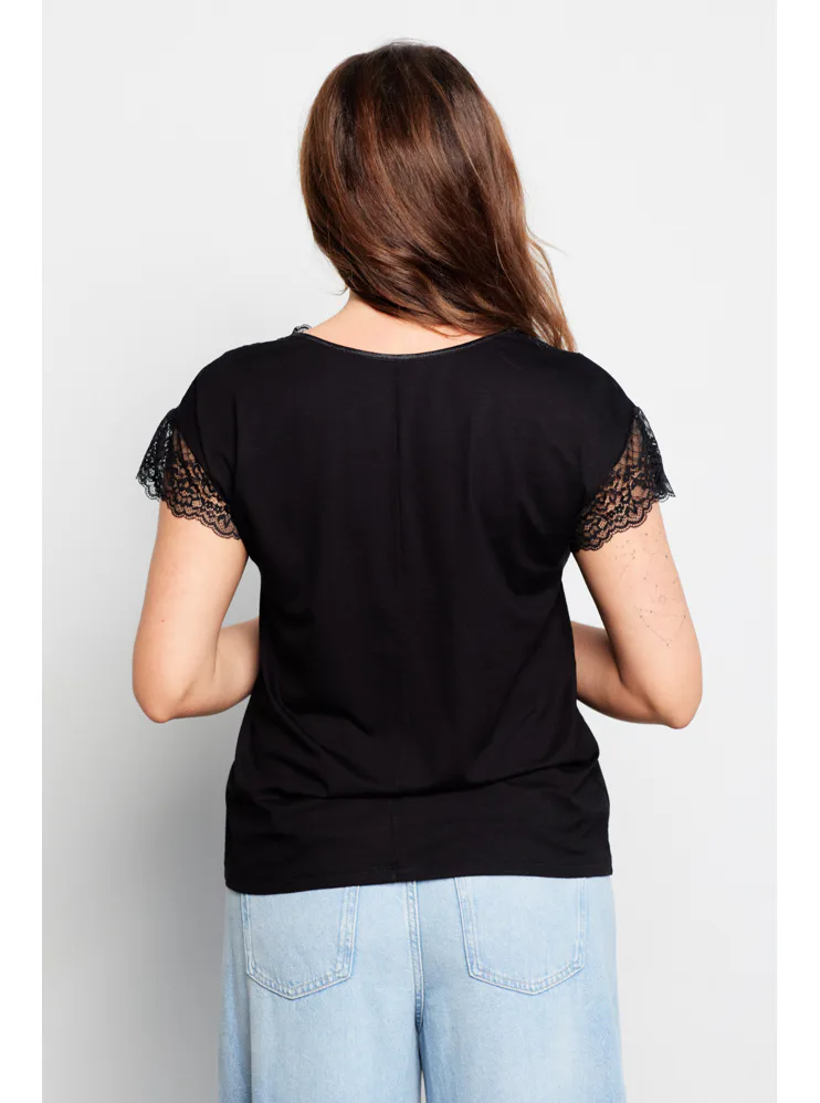 Tričko s krátkým rukávem je vyrobeno z příjemné viskózy, která se dokonale přizpůsobí vašemu tělu a zajistí vám maximální pohodlí po celý den. Krajkové detaily v oblasti výstřihu a na rukávech dodávají tričku nádech romantiky a elegance. Skvěle se kombinuje s elegantními kalhotami, džíny nebo sukní. Pořiďte si dámské tričko, které představuje kombinaci elegance a komfortu.