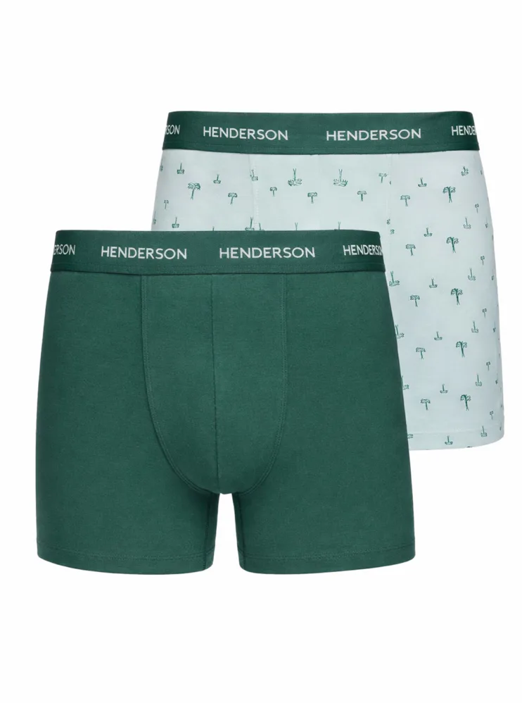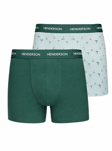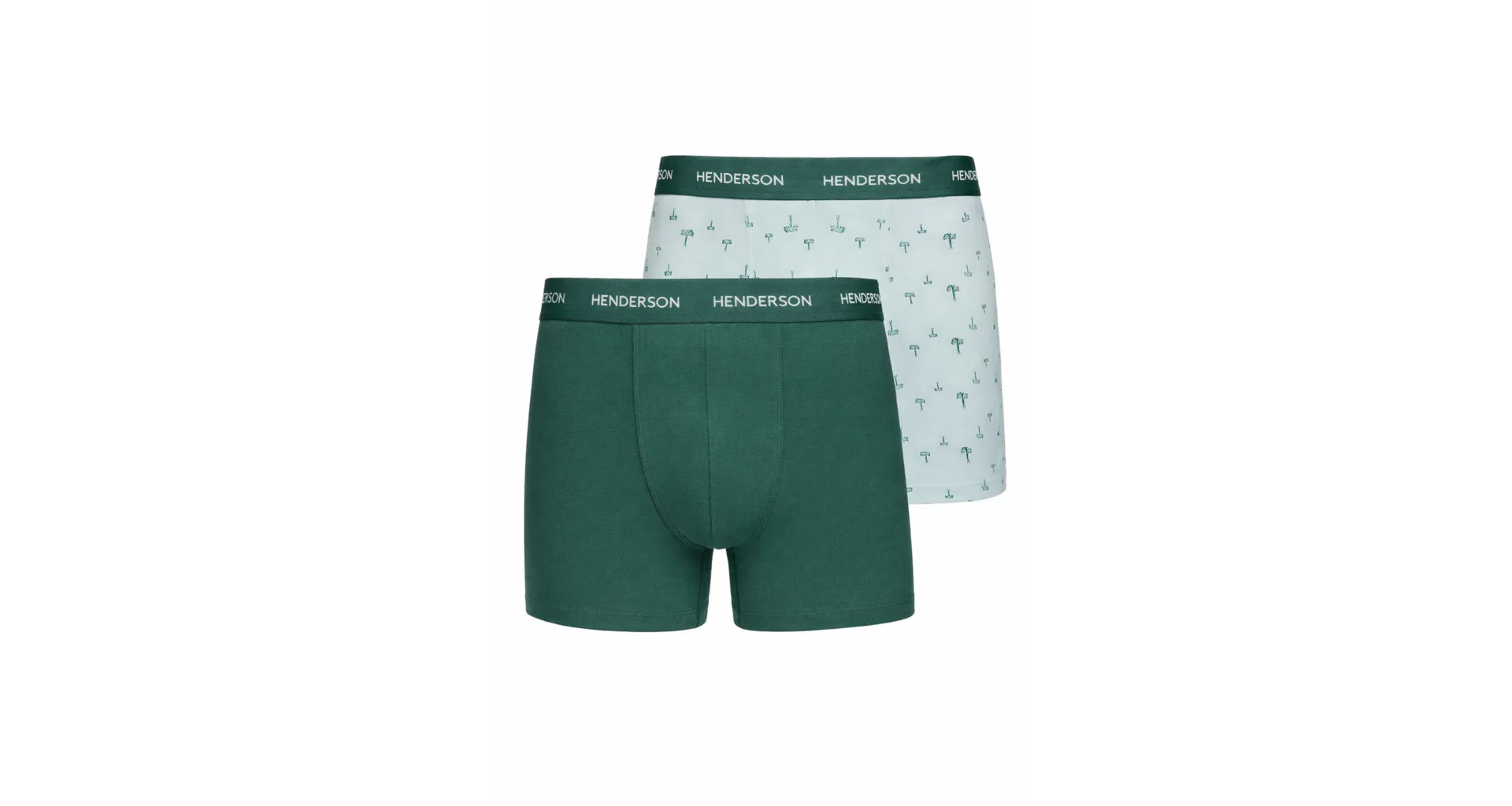 V balení se nachází dvoje pánské boxerky, které kombinují komfort a styl. Boxerky pořídíte v trendy tmavě zelené barvě a ve světle zelené barvě s motivem palmiček. Mají delší nohavičku a praktickou gumu v pase. Vyrobeny jsou z měkké bavlny s příměsí elastanu.