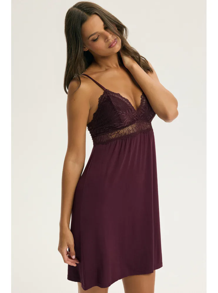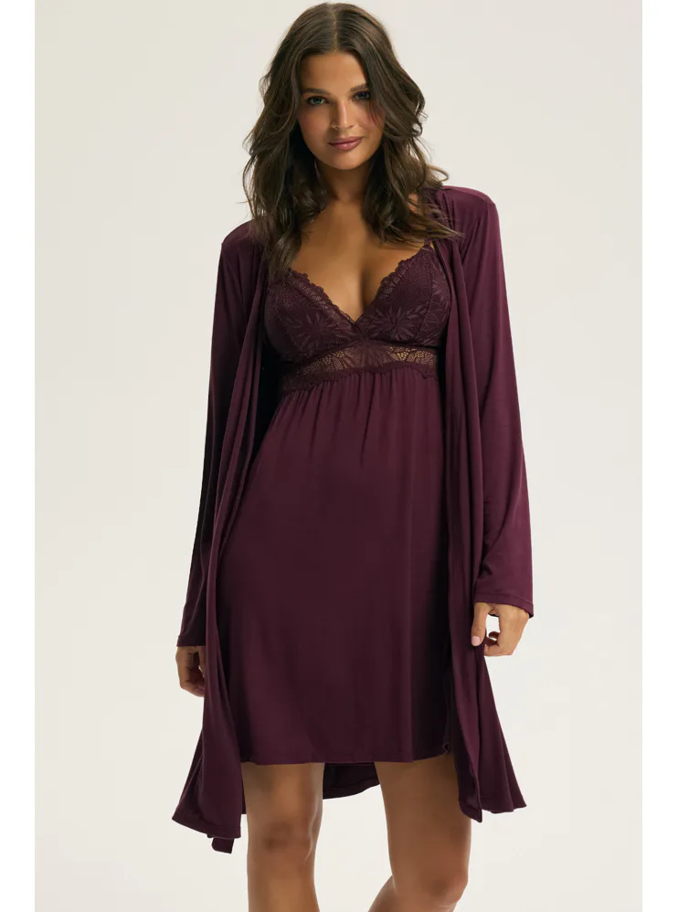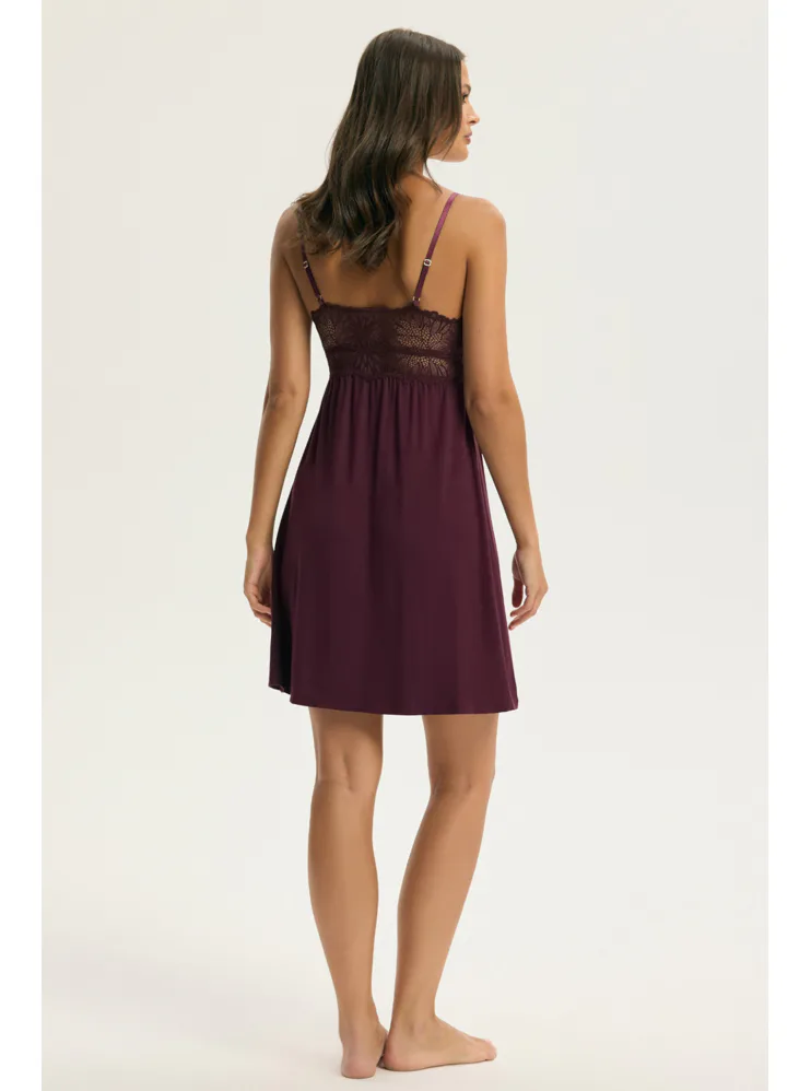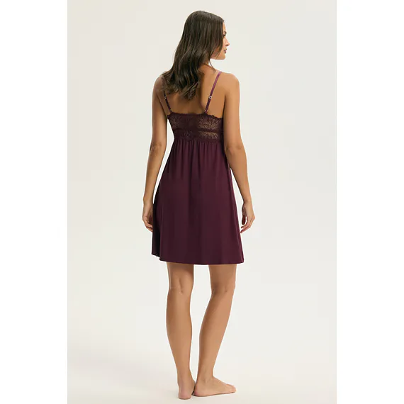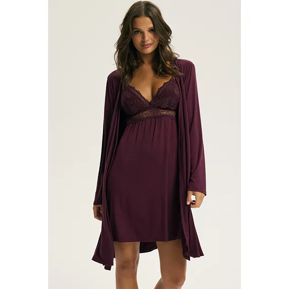Usínejte v noční košili, která vám dopřeje maximální volnost a pohodlí. Výstřih a záda košilky zdobí romantická krajka s motivem listů. Košilka se přizpůsobí postavě a podtrhne vaši ženskost. K dámské noční košili můžete pořídit i župan do setu.