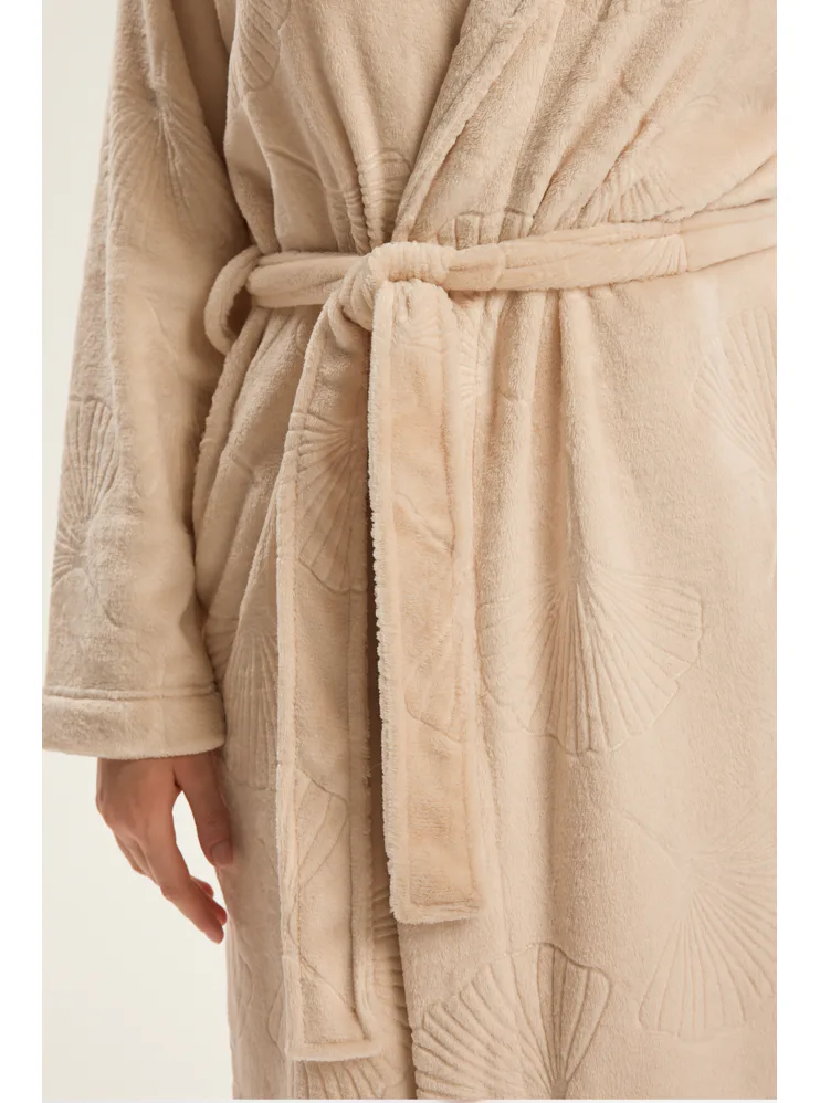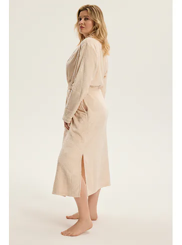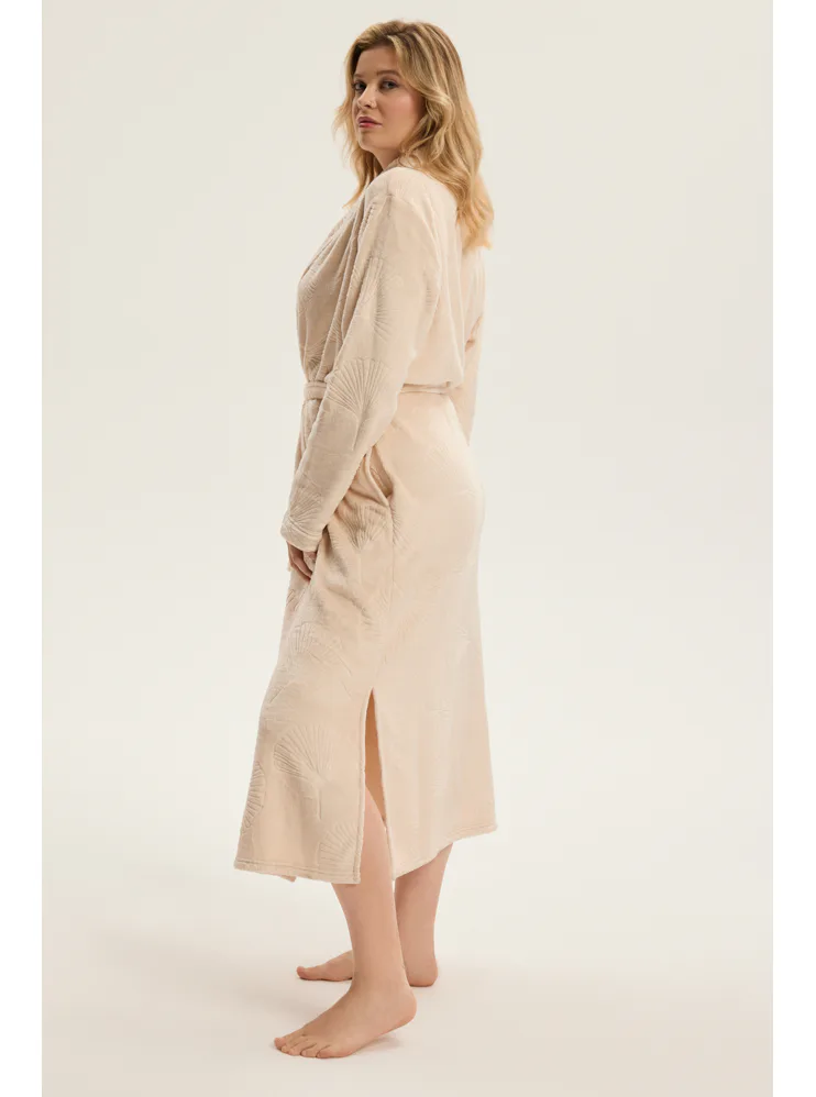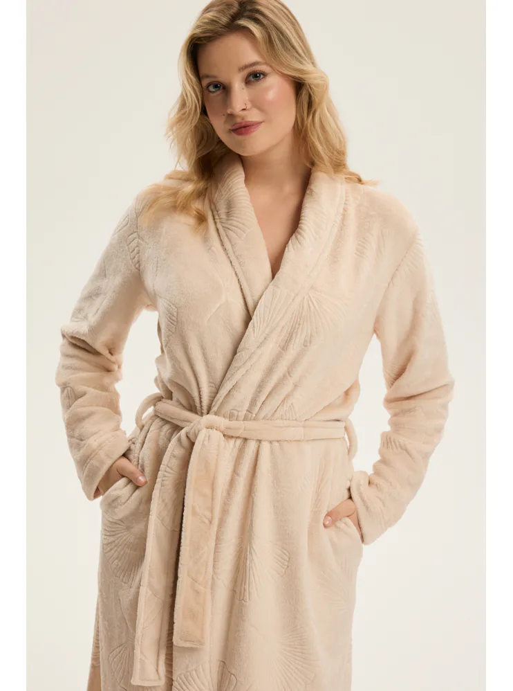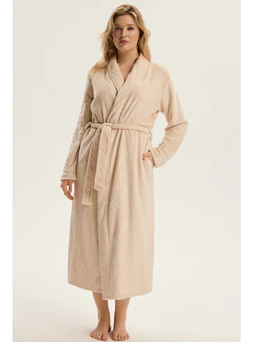 Dámský dlouhý župan se vzorem v béžové barvě