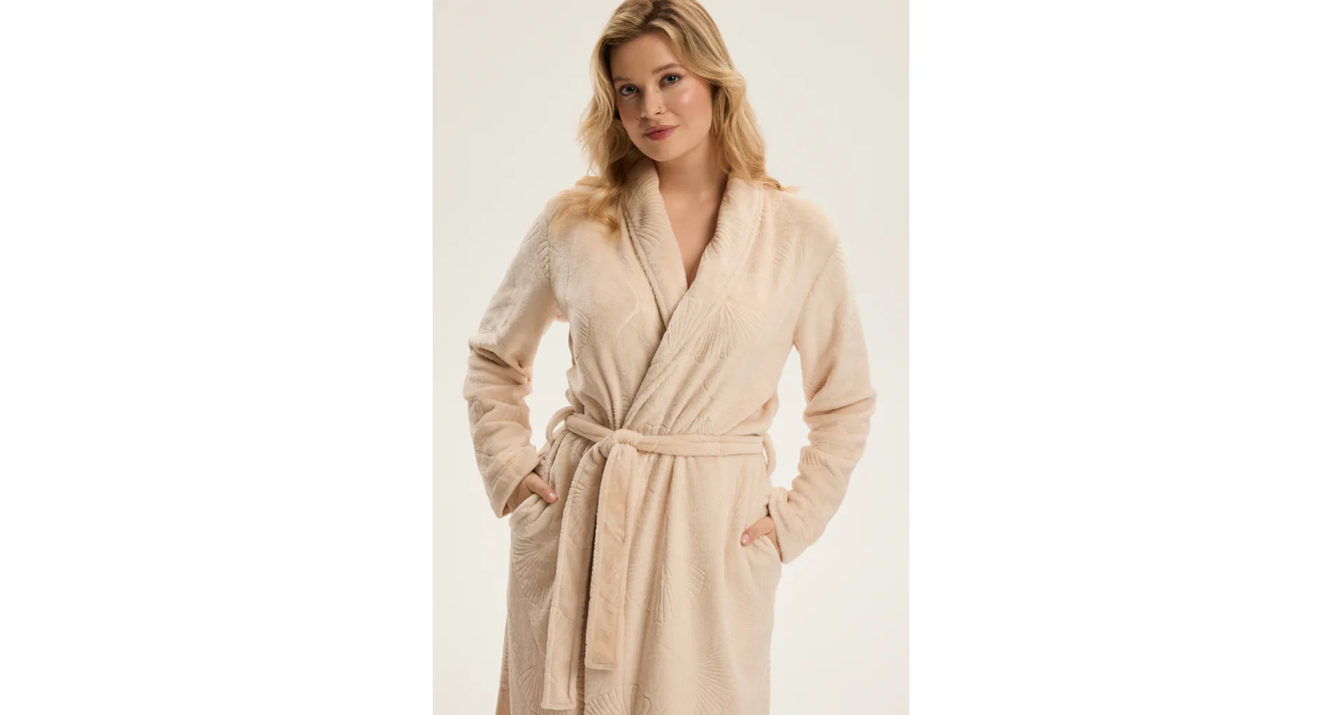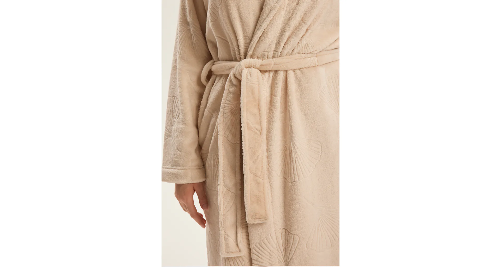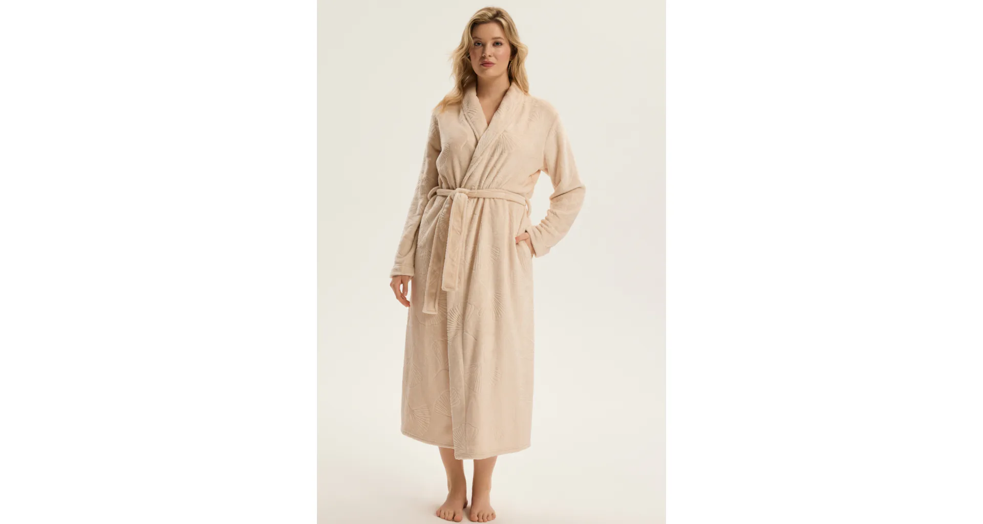 Dopřejte si pocit luxusu a pohodlí každý den. Elegantní župan zaujme jemným listovým vzorem. Měkký, hebký materiál je příjemný na dotek a doslova zve k relaxaci. Zahalte se do měkkosti a užijte si chvíli sama pro sebe.