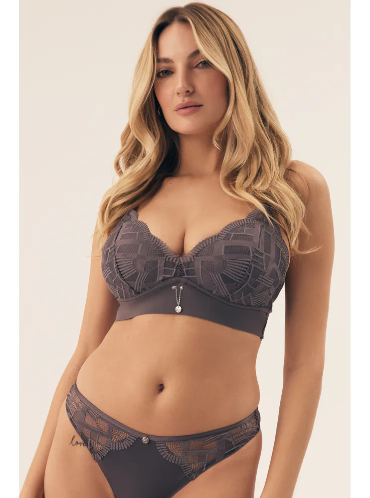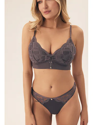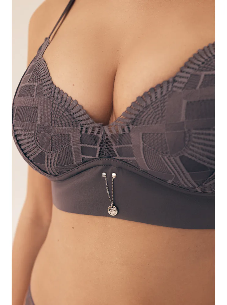 Braletka Intro se perfektně přizpůsobí vašemu pohybu a podtrhne přirozený tvar poprsí. S braletkou můžete i experimentovat a stylově ji nechat vykukovat pod tričkem či sakem. Podprsenkové koše zdobí jemná krajka. Na přední straně podprsenky se nachází stylový přívěsek. Samozřejmostí jsou nastavitelná ramínka a praktické zapínání vzadu na háčky. Ať už ji budete nosit doma, v práci nebo při volnočasových aktivitách, stane se vaším oblíbeným kouskem pro každý den. K této braletce si můžete pořídit i tanga ve stejném designu a vytvořit tak dokonalý komplet.