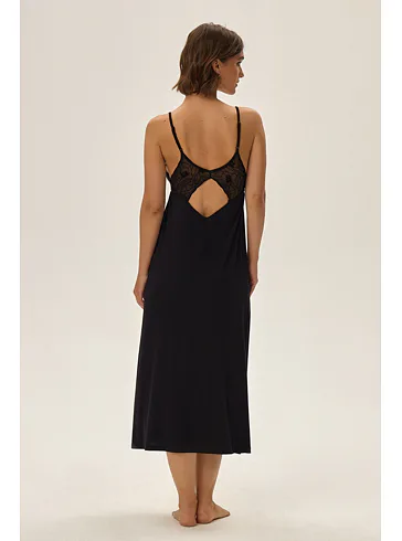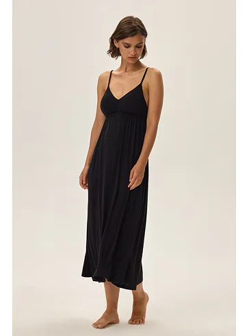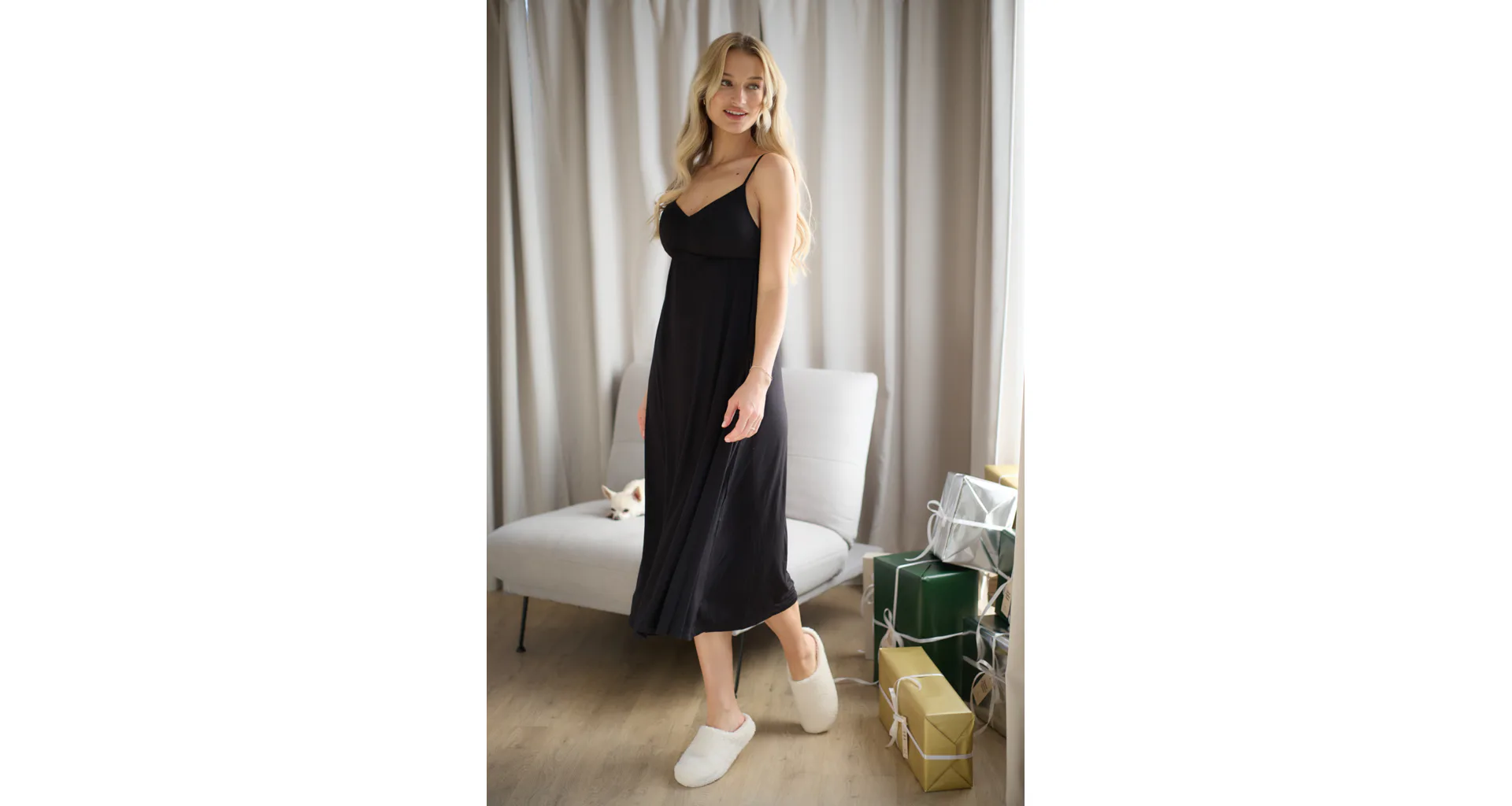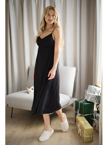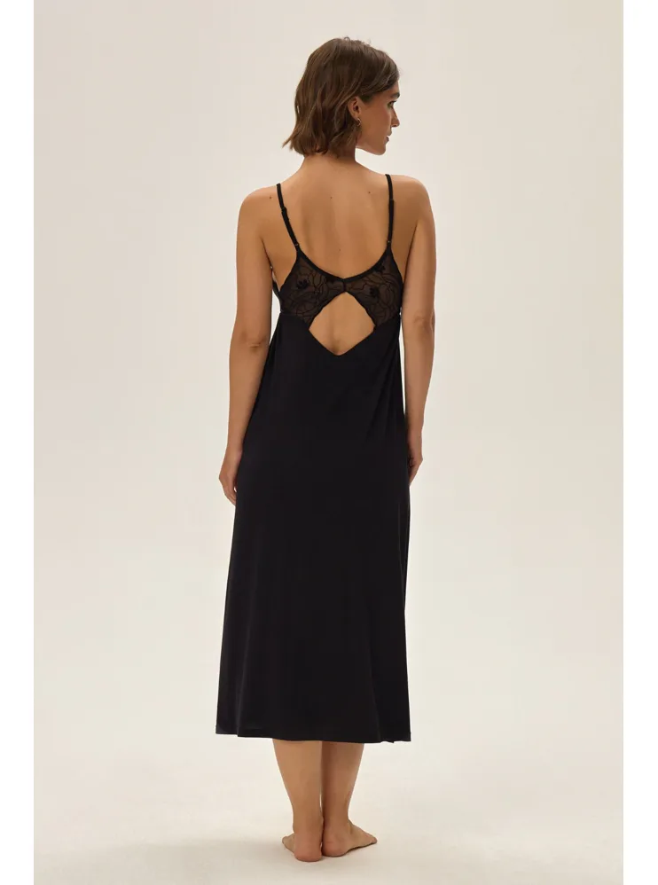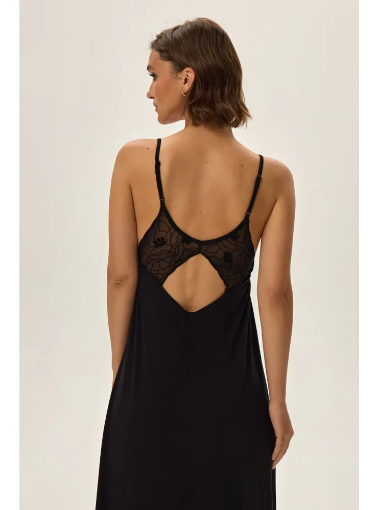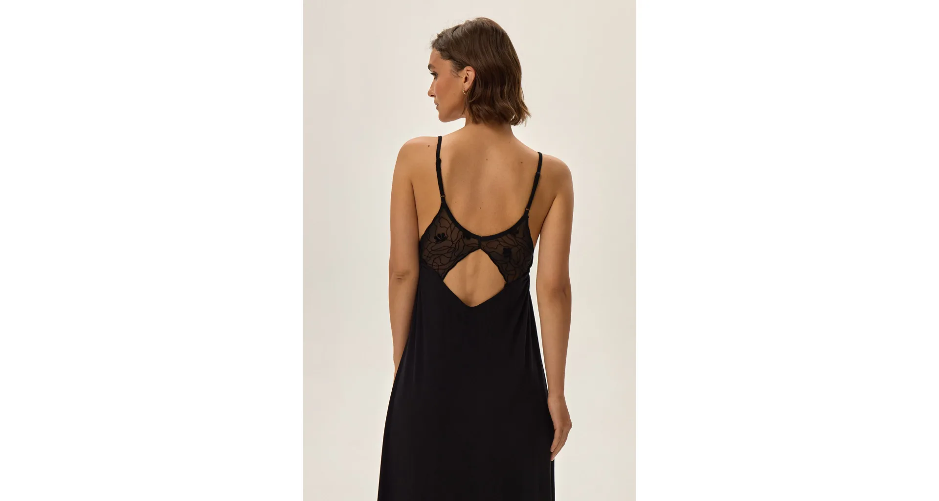 Noční černá košile s vyztuženými košíčky bez kostic prsa příjemně zafixuje a přitom poskytuje maximální komfort. Viskózový materiál zaujme svou měkkostí, prodyšností, a dokonce i trochu chladí. Šmrnc dodává košilce ozdobný tyl na zádech.