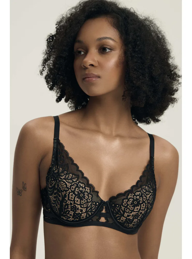 Krajková podprsenka s push-up efektem prsa přirozeně zpevní a zafixuje v požadované výšce. Vycpávky lze vyjmout a získat tak klasickou vyztuženou podprsenku. Zapínání má vzadu na háčky a ramínka lze nastavit dle potřeby. Perfektní volba do hlubokých výstřihů.