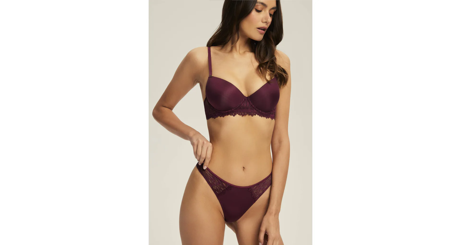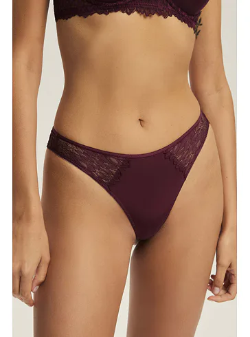 Krajková tanga v tmavě vínové barvě
