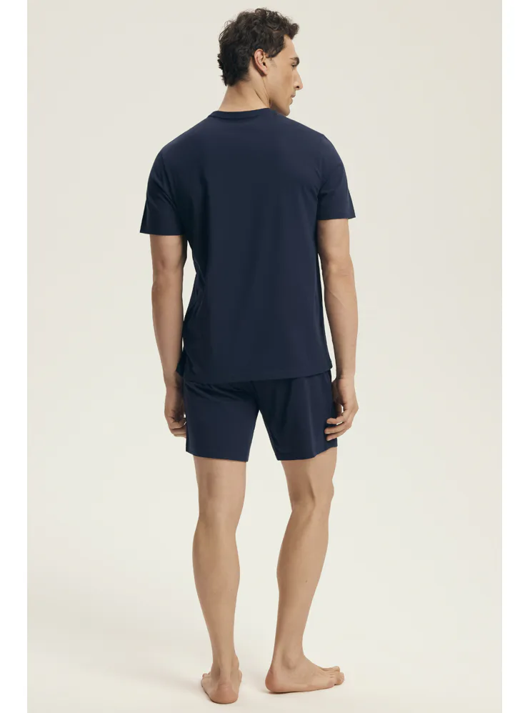 Zachumlejte se do postele v pohodlném, lehkém pyžamu pro muže. Pyžamový komplet se skládá z trička s krátkým rukávem a kraťasů s délkou nad kolena. Ideální nejen na spaní, ale i jako domácí oděv. Usínejte a odpočívejte ve stylovém pyžamu z limitované kolekce.
