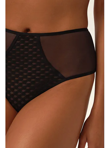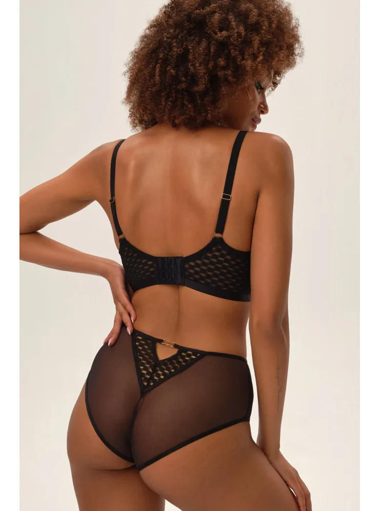 Klasické černé kalhotky s vyšším střihem jsou pohodlné a zároveň atraktivní. Zadní část z jemného tylu není jen elegantním prvkem, ale i praktickým detailem, který vám zajistí maximální pohodlí po celý den. K těmto kalhotkám si lze pořídit vyztuženou Spacer podprsenku ve stejném designu.