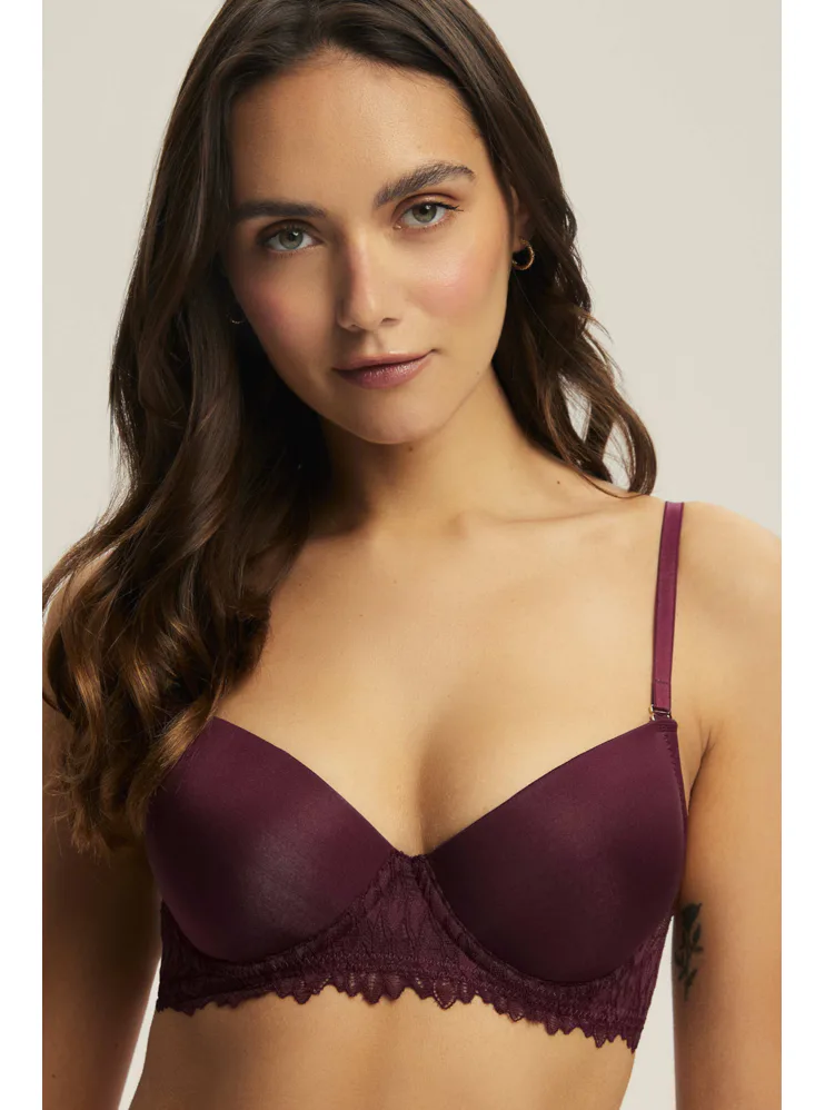 Push-up podprsenka s krajkou v tmavě vínové barvě