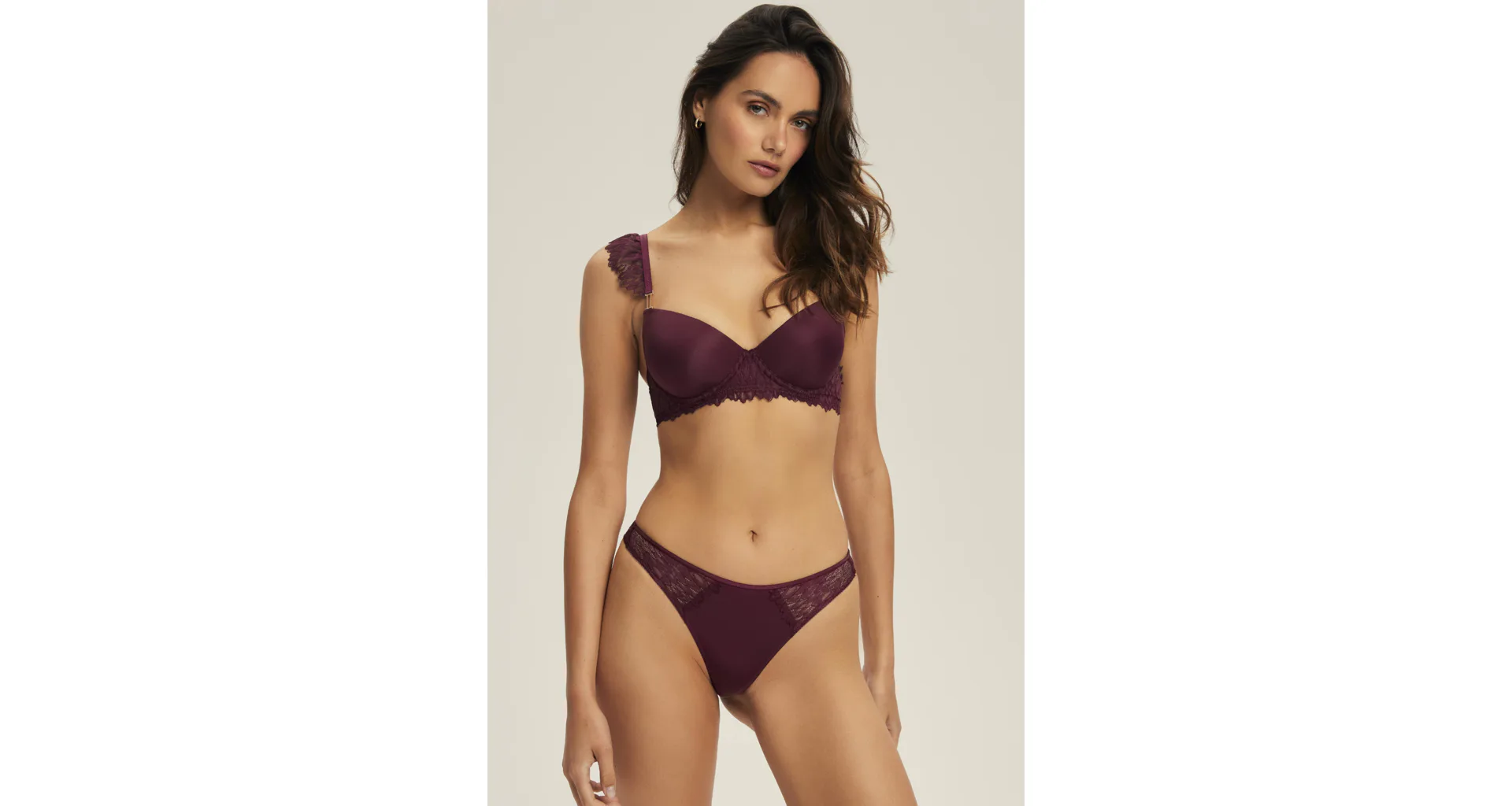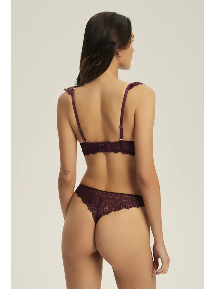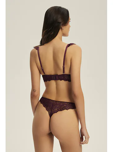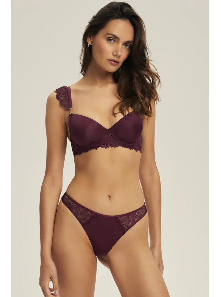 Doporučujeme ji doplnit o tmavě vínová krajková tanga , se kterými vytvoříte dokonale sladěný a svůdný komplet.
