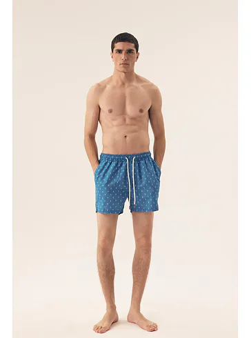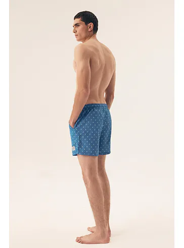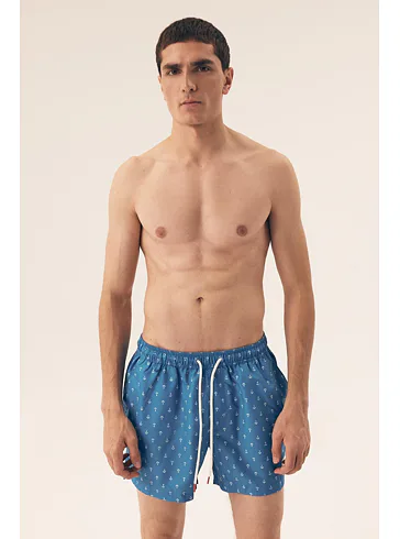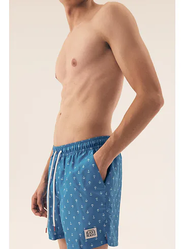 Modré plavkové šortky zaujmou letním vzorem kotviček. Mají praktickou stahovací šňůrku v pase, díky které šortky perfektně sedí a nesklouzávají. Vhodné jak na plavání, tak i na plážové hry. Zajistí pohodlí při celodenním nošení a zaručeně se stanou vaším oblíbeným letním kouskem. Pořiďte si pánské šortky, které budete s radostí nosit celé léto.