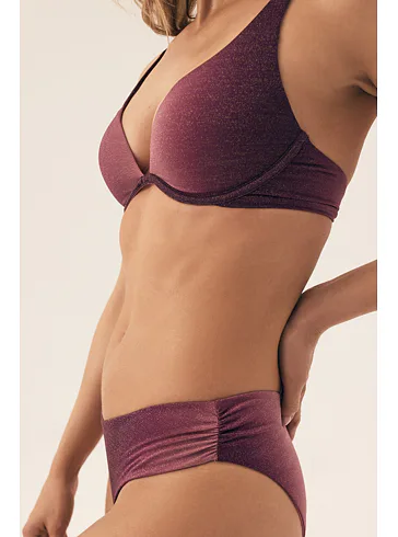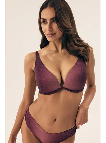 Push up plavková podprsenka s kosticemi vytvaruje a podrží poprsí na svém místě. Zaujme třpytivým efektem, který dodává plavkám elegantní a luxusní vzhled. Ramínka lze nastavit dle potřeby a nikde se nezařezávají. Zapínání se nachází vzadu na sponu. Lurexové vlákno se krásně leskne a dobře drží svůj tvar. Staňte se královnou pláže v růžové plavkové podprsence, ve které budete nepřehlédnutelná. K této podprsence si lze pořídit plavkové kalhotky s nízkým střihem nebo klasické plavkové kalhotky a vytvořit tak dokonalý letní set.