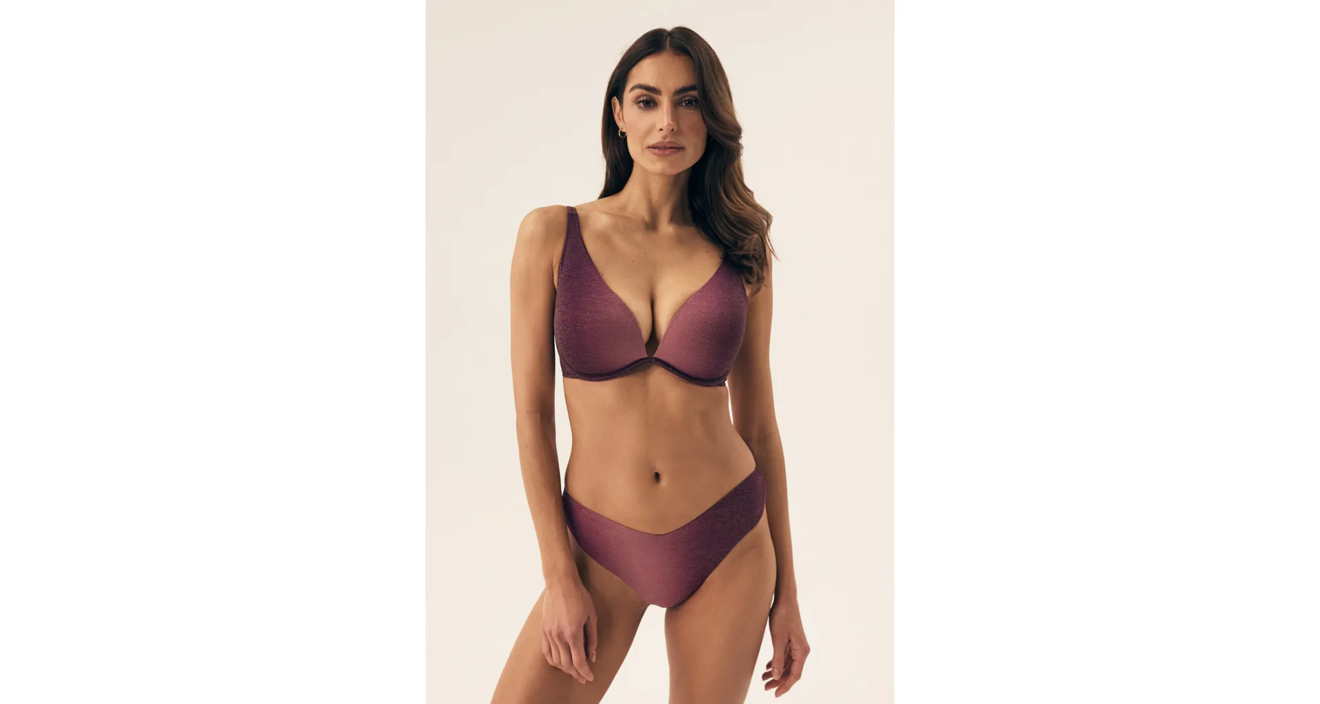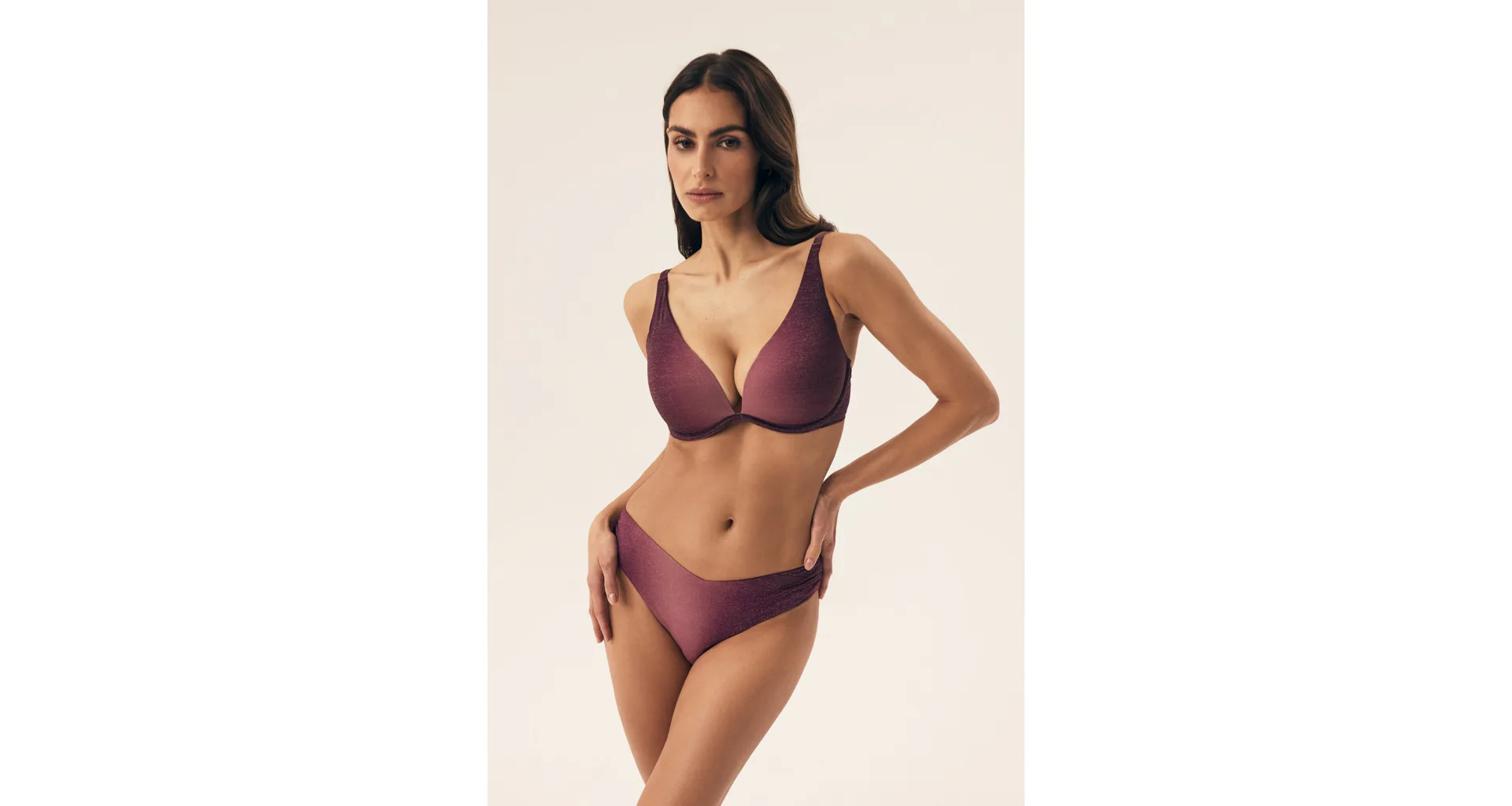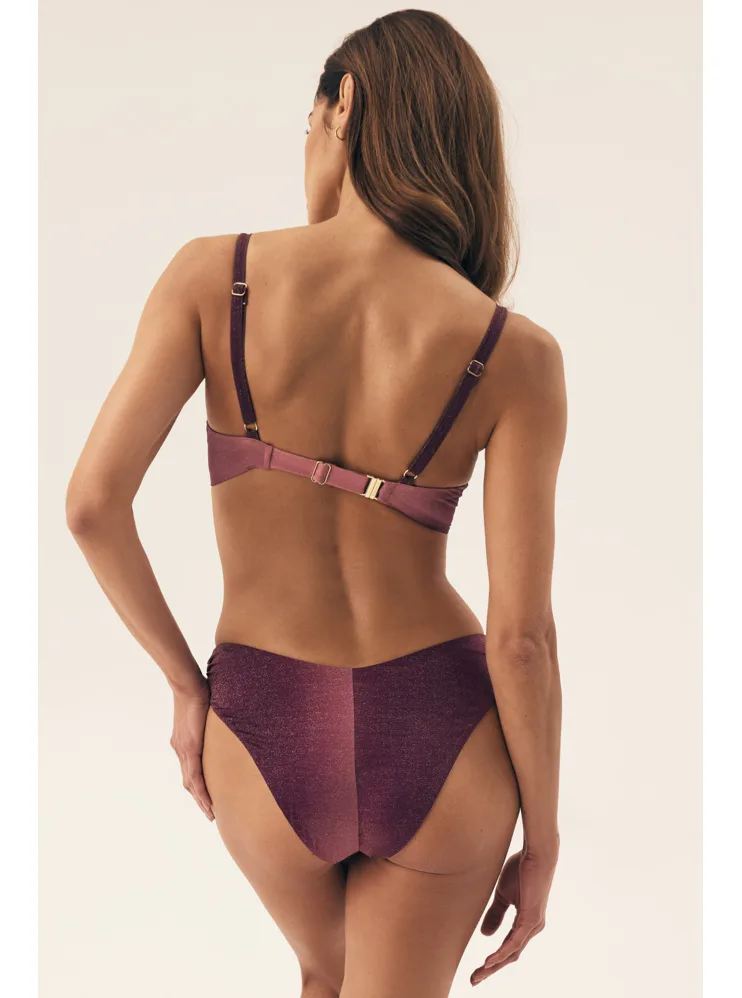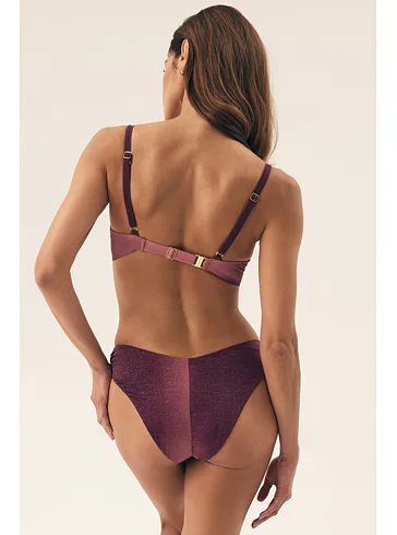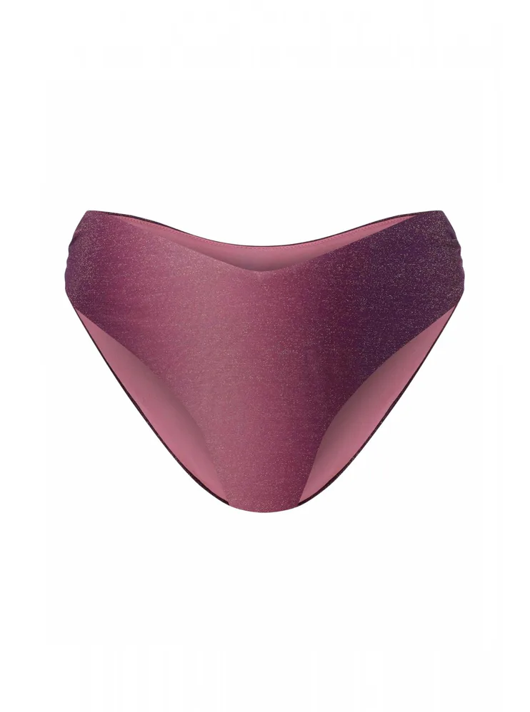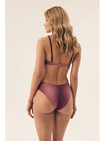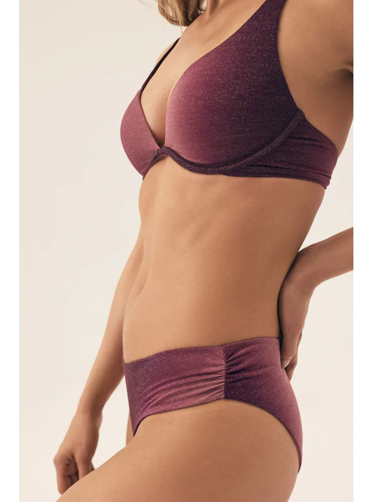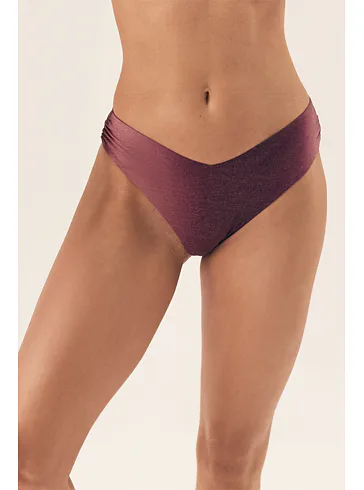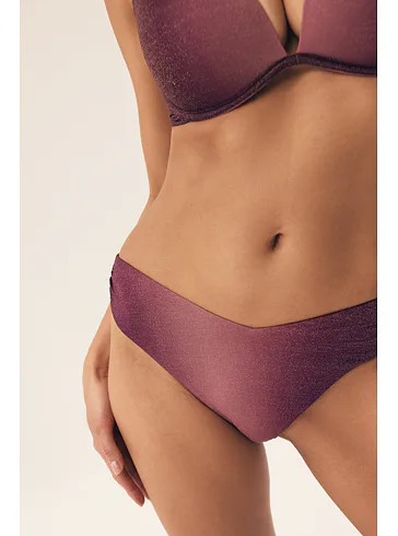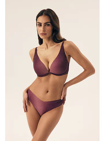 Klasické plavkové kalhotky se střihem do písmene V opticky zeštíhlí postavu a prodlouží nohy. Decentní řasení na bocích dodává kalhotkám šmrnc. Lurexové vlákno se krásně třpytí a vyniká vysokou odolností vůči opotřebení. Kalhotky nikde netlačí a nezařezávají se. V růžových plavkách se budete cítit skvěle na pláži i u bazénu. K těmto kalhotkám si lze pořídit i bikinovou podprsenku nebo push-up plavkovou podprsenku a vytvořit tak dokonalý letní set.