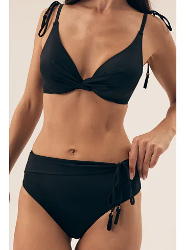 Vyšší plavkové kalhotky poskytují dostatečné krytí a opticky zvýrazní vaše křivky. Perfektně sedí a přizpůsobí se vašemu tělu. Užijte si léto u vody v černých plavkách Esotiq.