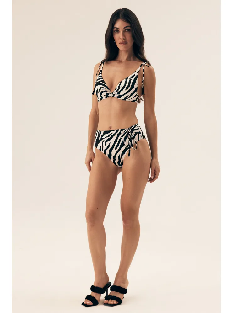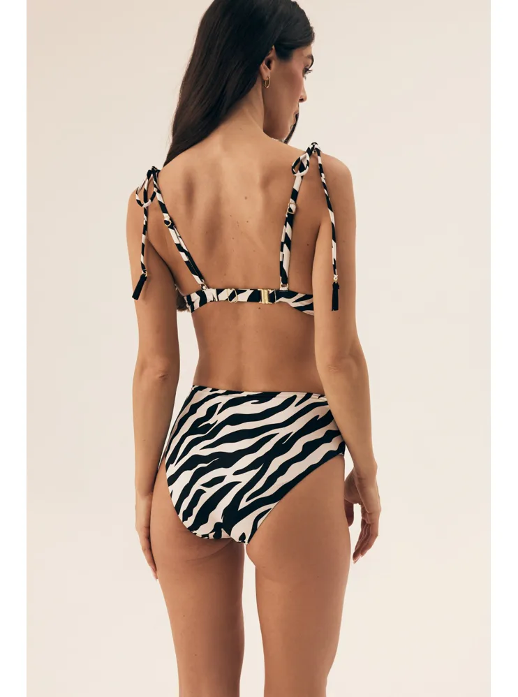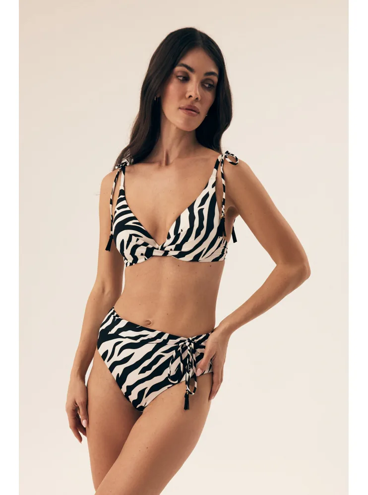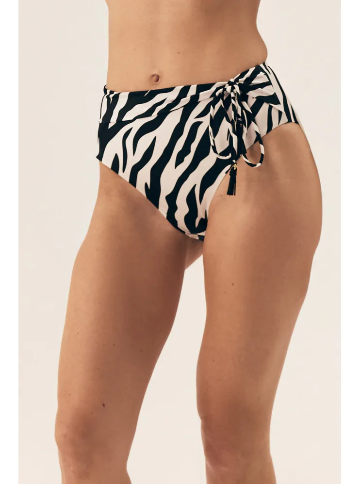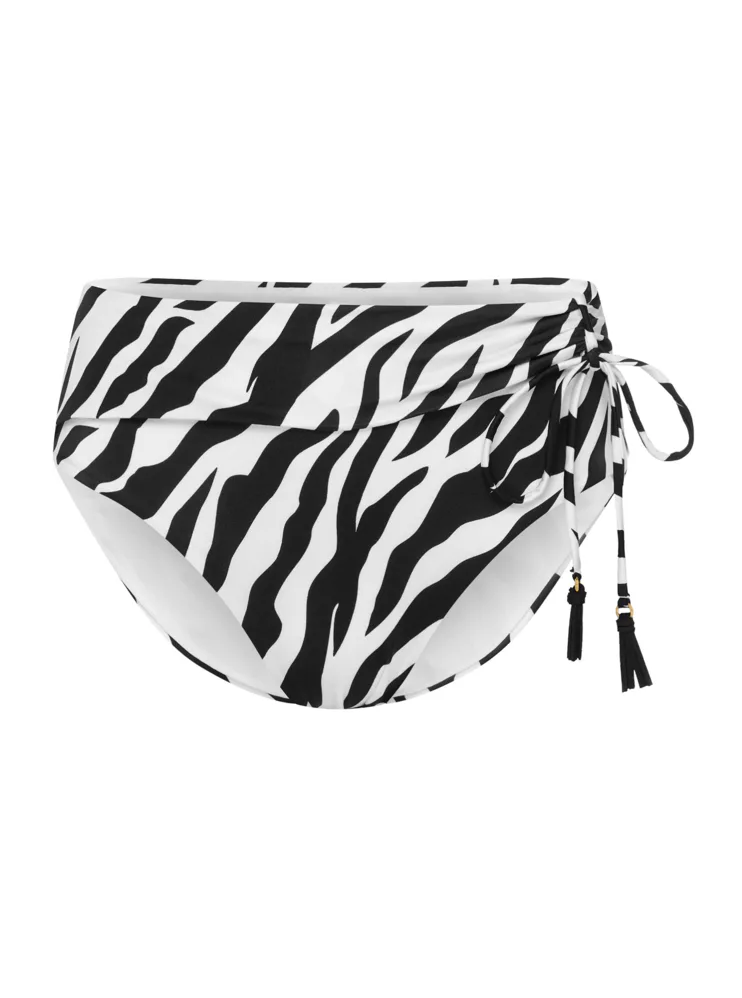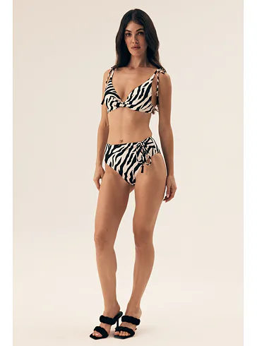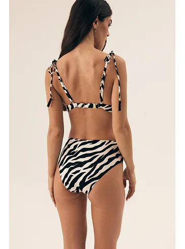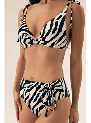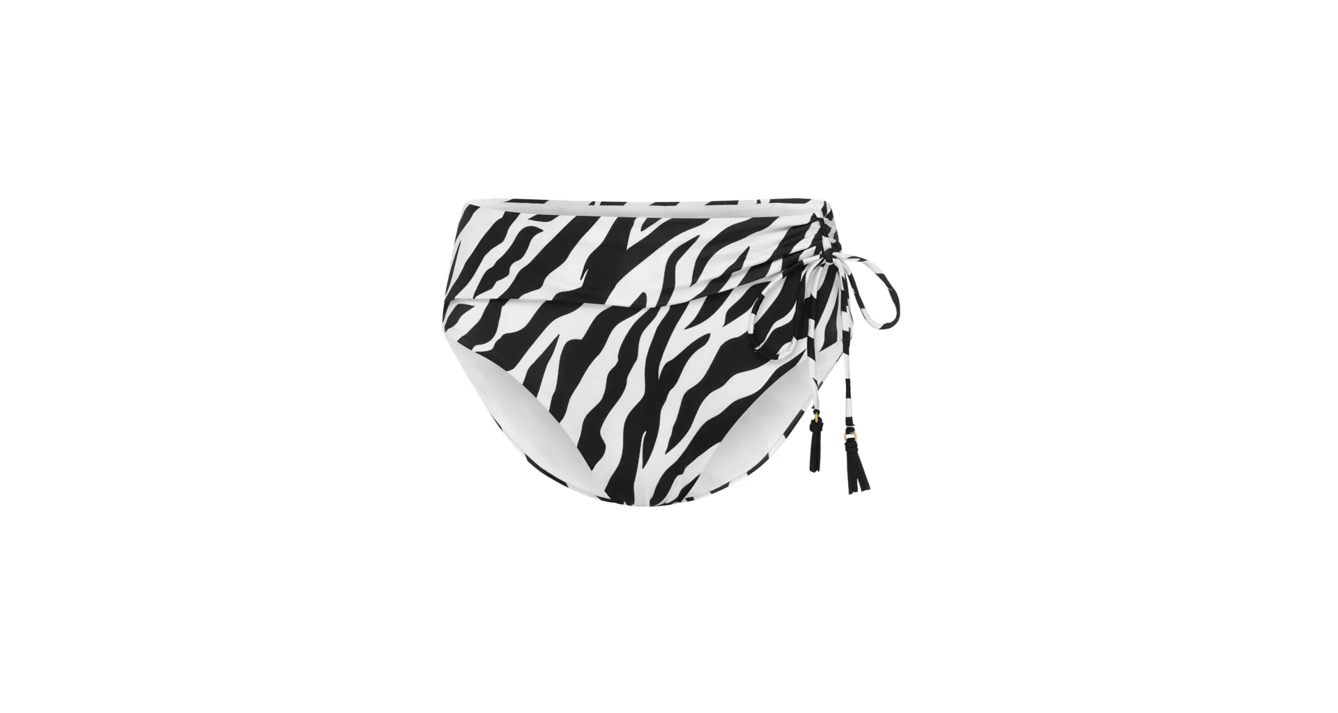 Vyšší plavkové kalhotky poskytují dostatečné krytí a opticky zvýrazní vaše křivky. Perfektně sedí a přizpůsobí se vašemu tělu. Užijte si léto u vody v plavkách se zebrovaným vzorem.