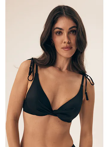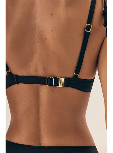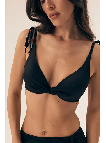 Černá plavková podprsenka splňuje všechny požadavky náročné ženy. Zafixuje poprsí ve svém přirozeném tvaru a vytvoří lichotivý dekolt.