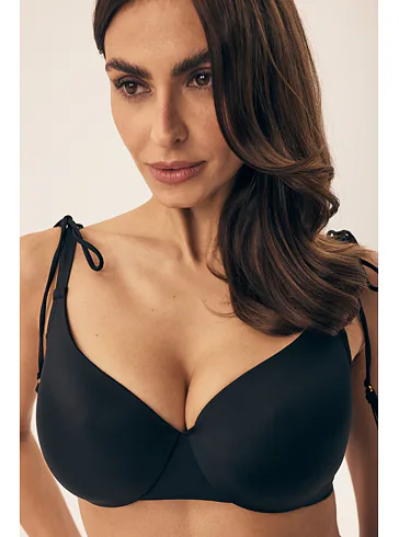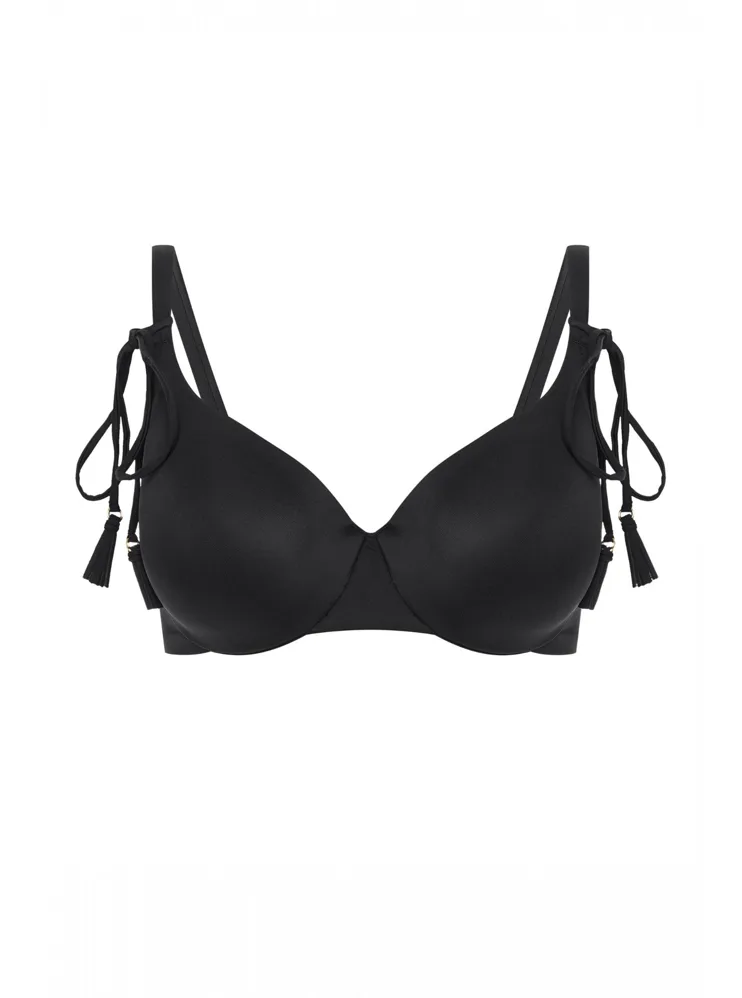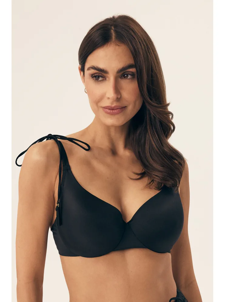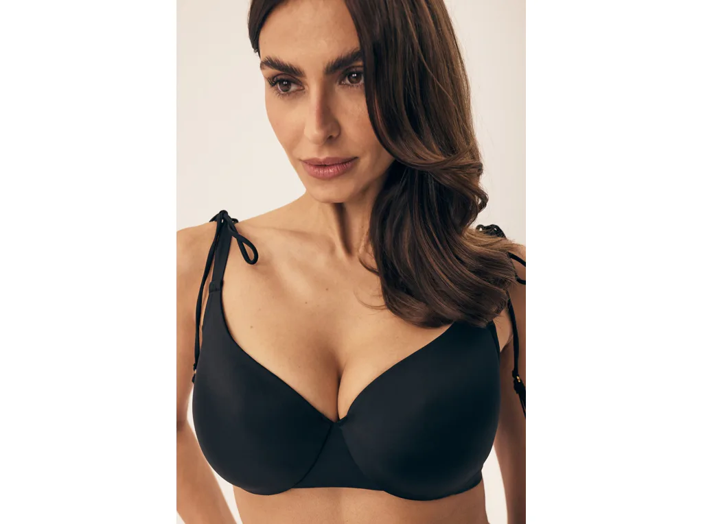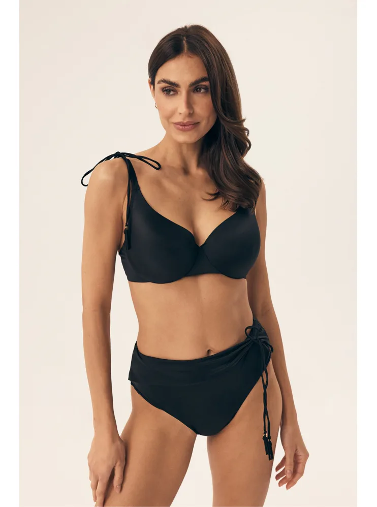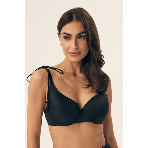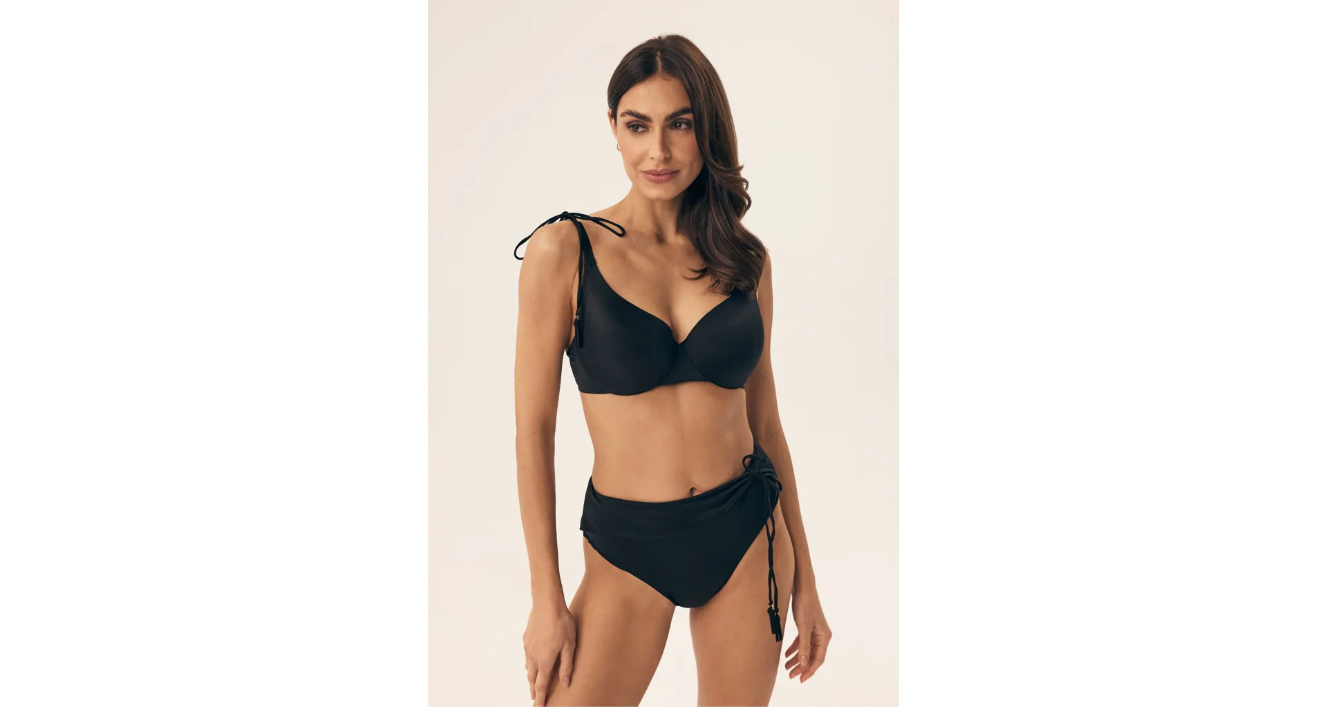 Plavková podprsenka s kosticí pozvedne poprsí a vytvoří zakulacený dekolt. Přizpůsobí se každému vašemu pohybu a nikde netlačí. Má nastavitelná ramínka a zapínání vzadu na sponu. Poskytuje komfort při celodenním nošení. Černá elegantní plavková podprsenka nesmí chybět ve vaší letní výbavě. K této podprsence si lze pořídit klasické plavkové kalhotky nebo vyšší plavkové kalhotky a vytvořit tak kompletní set. Dostupné až do velikosti G.