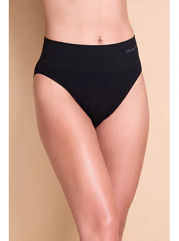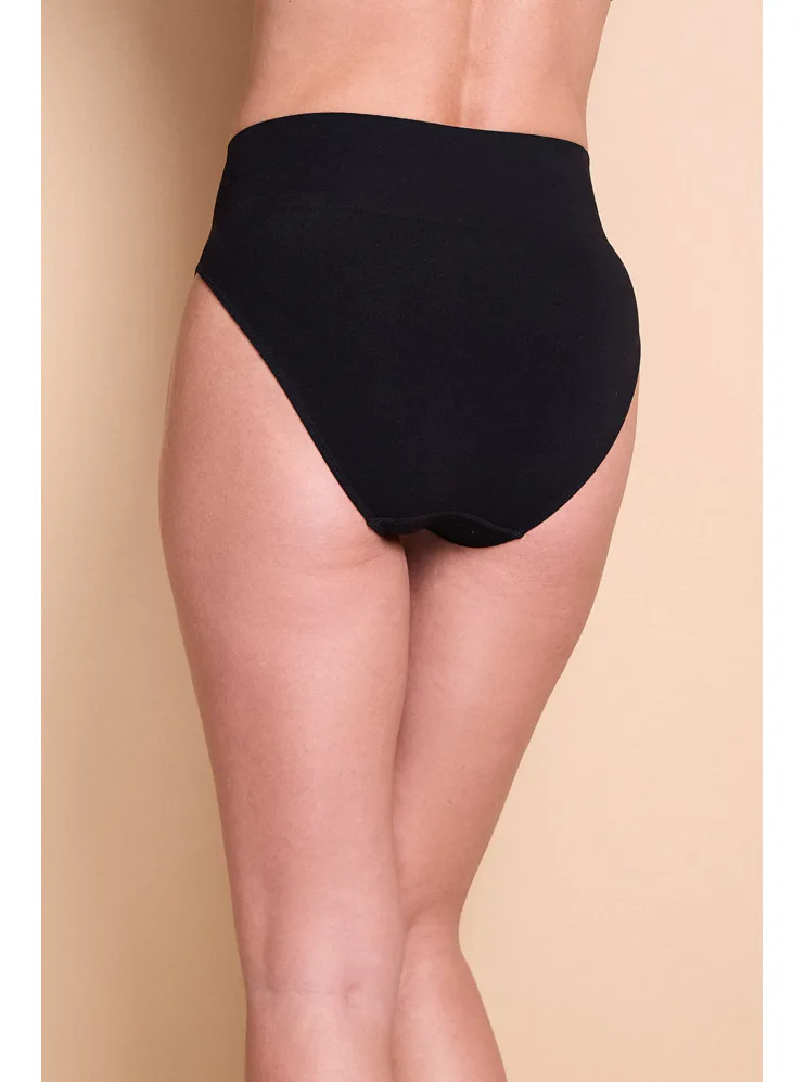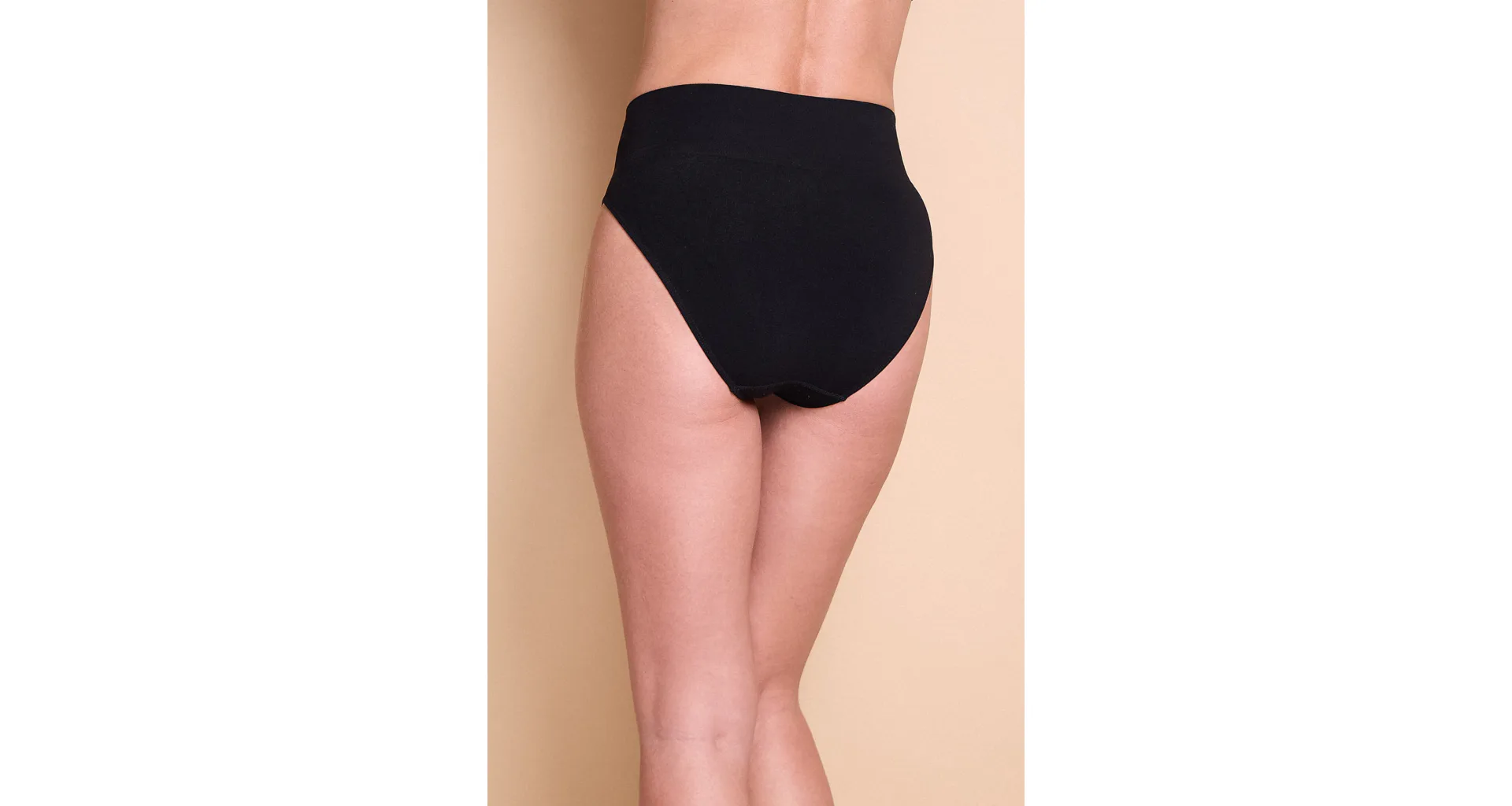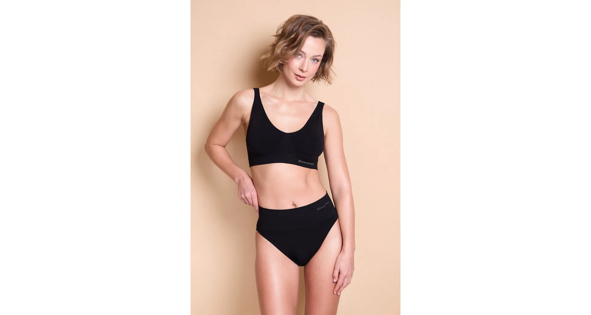 Černé kalhotky z bambusového vlákna dokáží absorbovat až 4x více vlhkosti než bavlna, jsou krásně hebké a eliminují množení bakterií. Široký elastický pas pomáhá zpevnit oblast bříška a boků. Přední i zadní část kalhotek je hladká, takže se vám nebudou rýsovat pod oblečením. Perfektně padnou zejména pod šaty a kalhoty s vyšším pasem. Kalhotky lze pořídit i v béžové barvě.