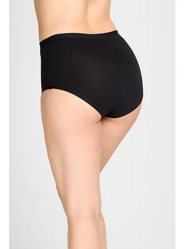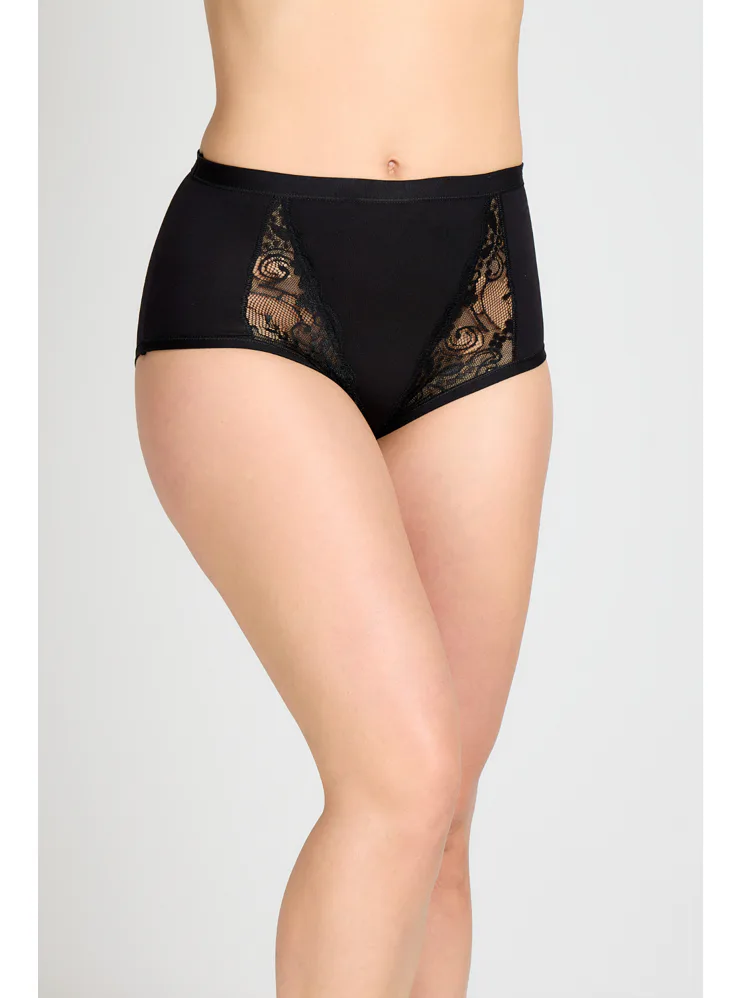 Černé kalhotky z modalového úpletu vynikají jemností, velmi dobře absorbují vlhkost a zachovávají si svou pevnost i při častém praní. Díky zvýšenému pasu se neshrnují dolů a perfektně sedí na postavě. Kalhotky zdobí na přední straně jemná krajka a jejich zadní část je krásně hladká. Mají zesílený bavlněný klín pro zajištění maximálního pohodlí. Kalhotky lze pořídit i v tělové barvě. Ideální pro každodenní nošení i výjimečné příležitosti.