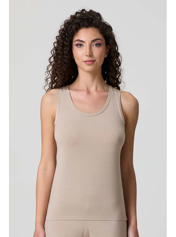 Pohodlné a zároveň elegantní tílko je nepostradatelným kouskem ve vašem šatníku. Béžové tílko v létě unosíte samostatně ke kalhotám nebo sukni a v zimě poslouží jako skvělý základ pro vrstvení pod košile a svetry. Zvole komfort a styl.