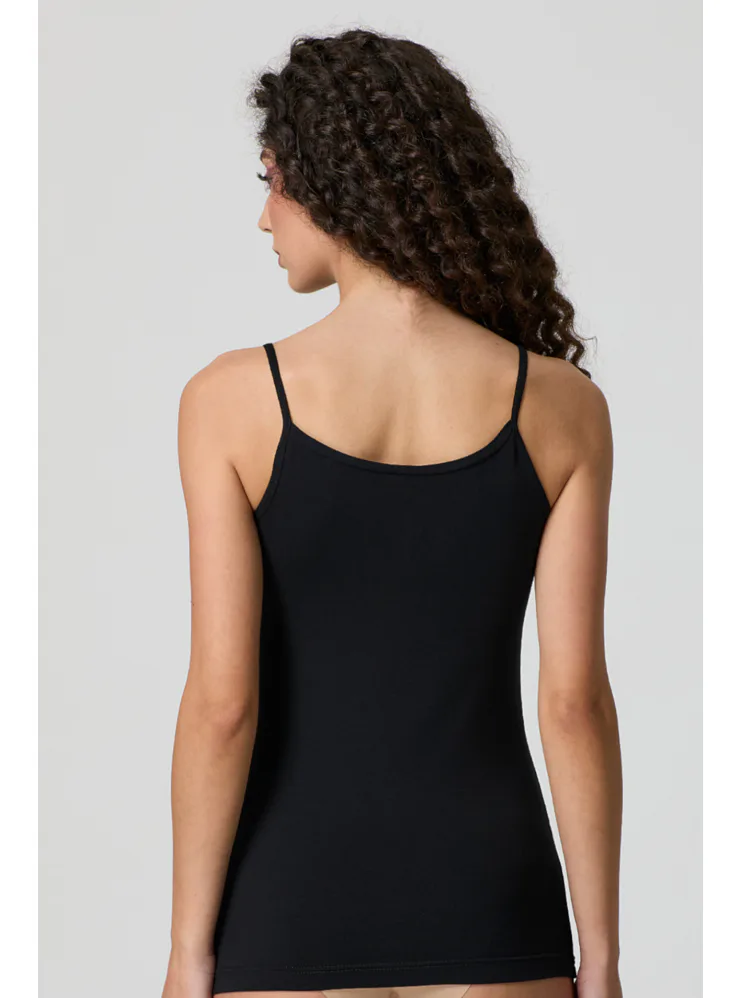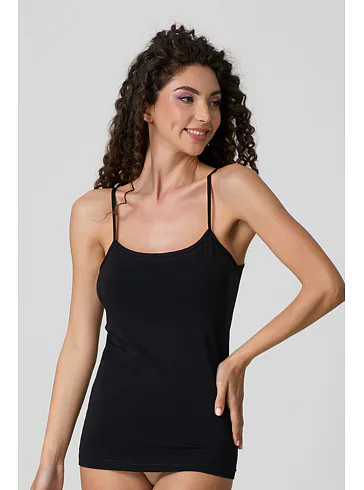 Elastický top představuje spojení pohodlí a elegance. Dokonale se přizpůsobí vaší postavě, nosit ho můžete doma i do práce. Černé tílko je vyrobeno z bavlny, modalu a elastanu, které umožňují pokožce volně dýchat a zajišťují příjemný pocit při nošení.