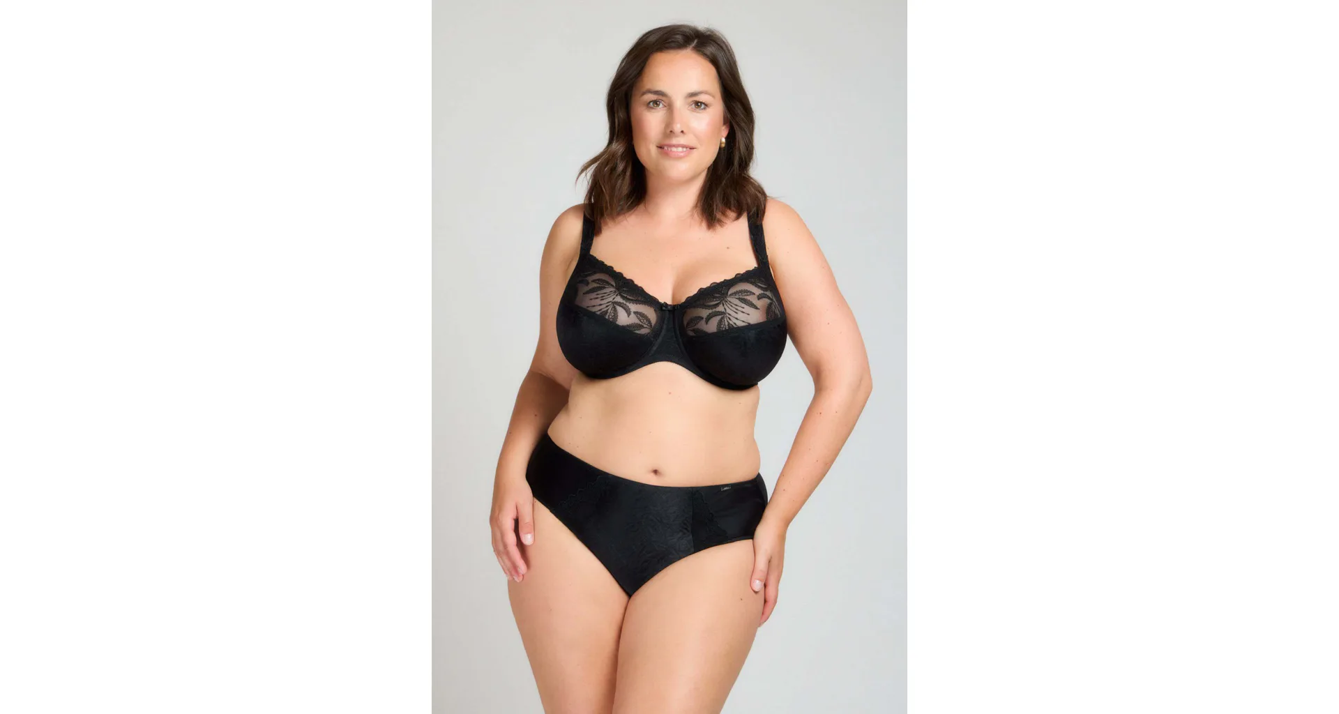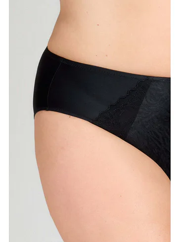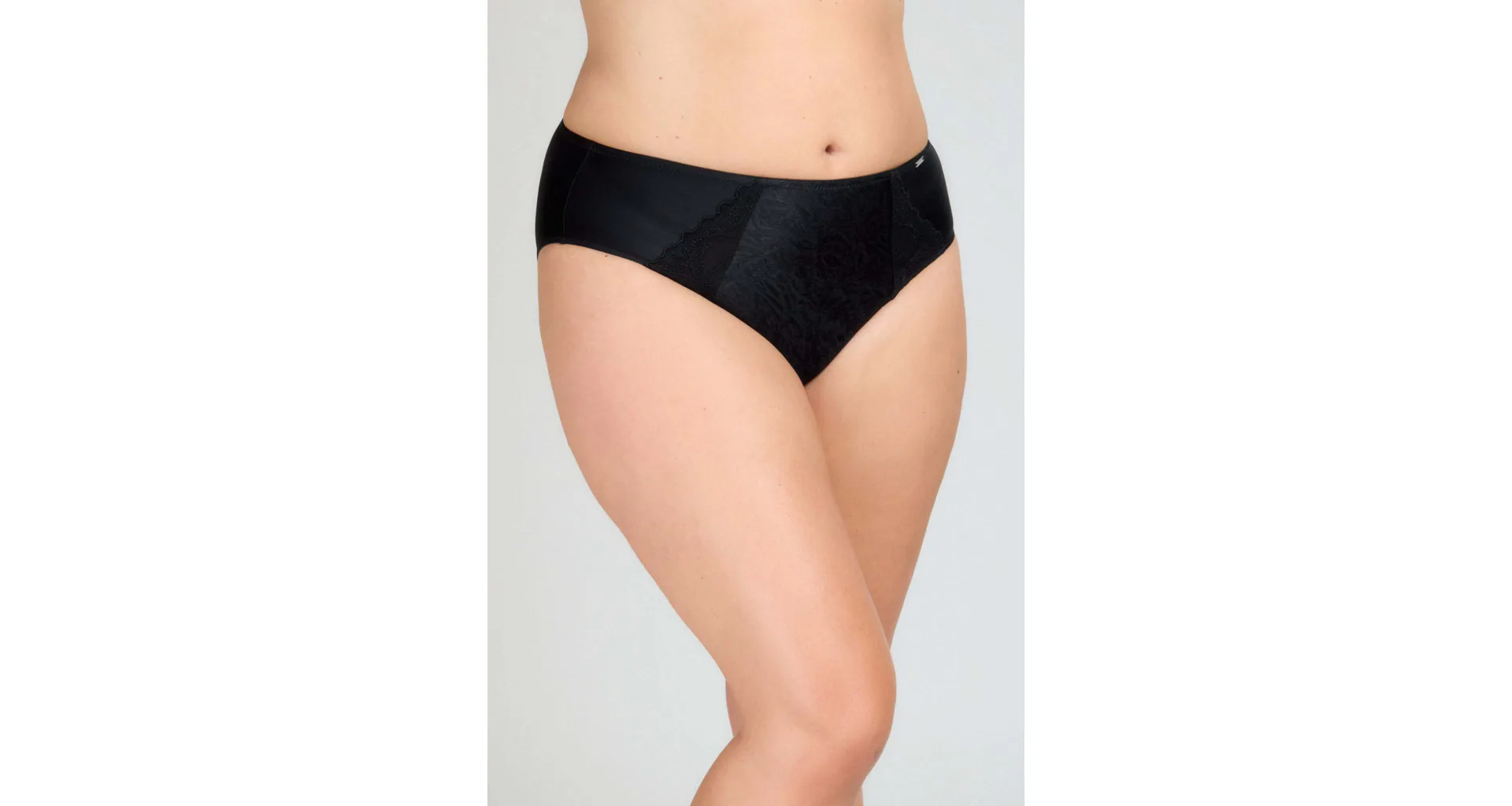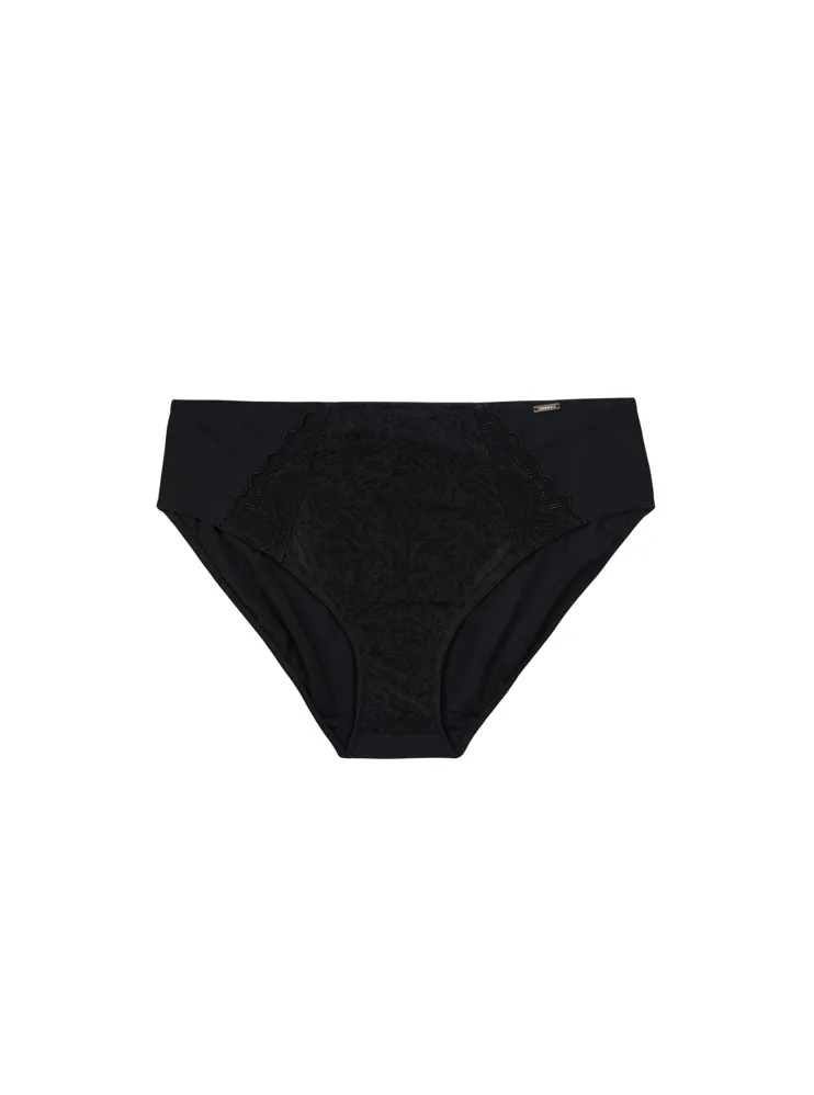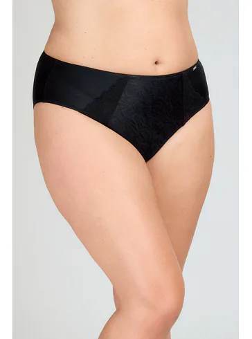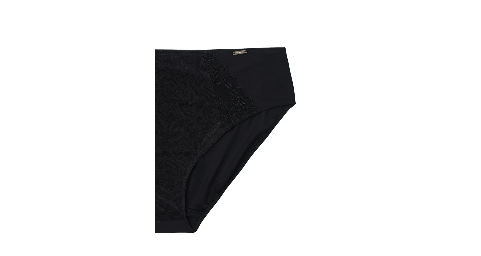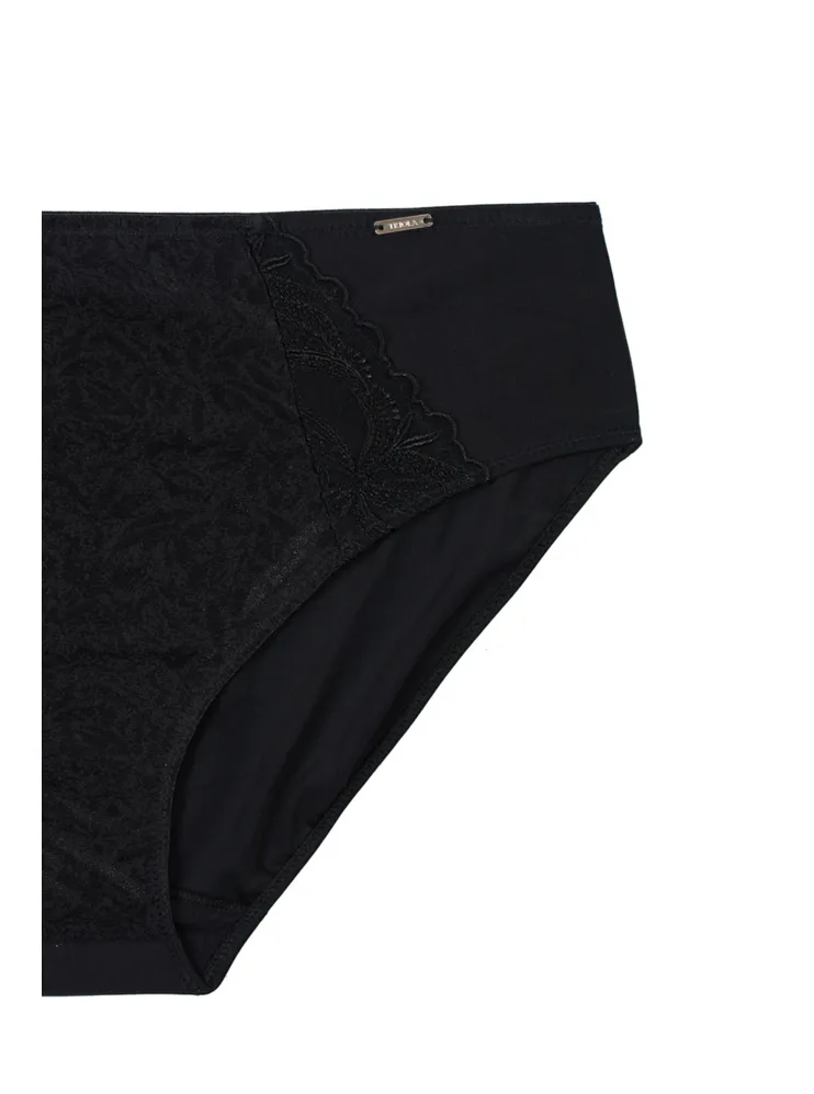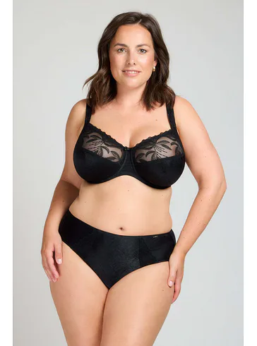 Dámské kalhotky klasického střihu v černé barvě zaujmou předním dílem z jemného žakáru, který jim dodává sofistikovaný vzhled. Vsadky z výšivky podtrhnou ženské křivky. Zadní díl kalhotek je z hladkého úpletu. Kalhotky mají bavlněný klínek. Spolehněte se na pohodlí a pořiďte si klasiku, která nikdy nevyjde z módy. Ke kalhotkám lze pořídit i nevyztuženou podprsenku ve stejném provedení.