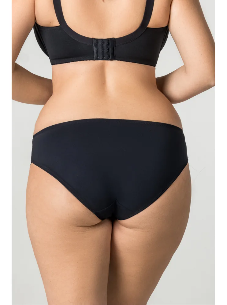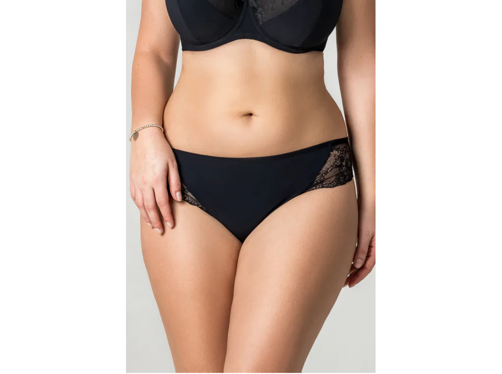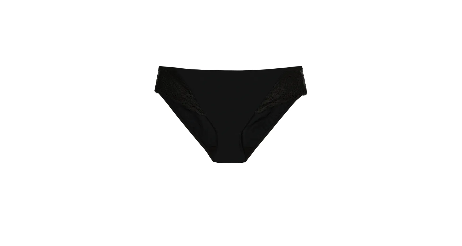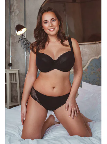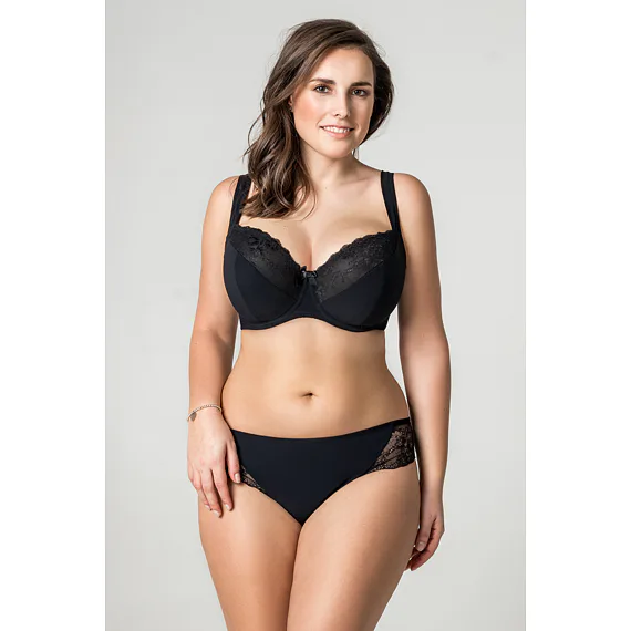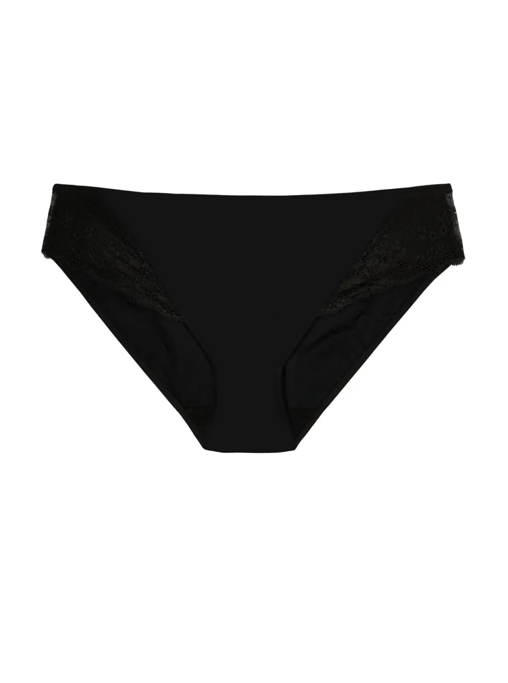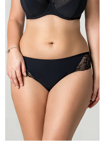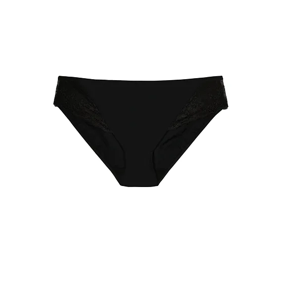 Podtrhněte vaše ženské křivky v atraktivních dámských kalhotkách klasického střihu. Černé kalhotky zdobí průsvitné krajkové vsadky na bocích. Nadčasový klasický střih poskytuje plné krytí a komfort při celodenním nošení.