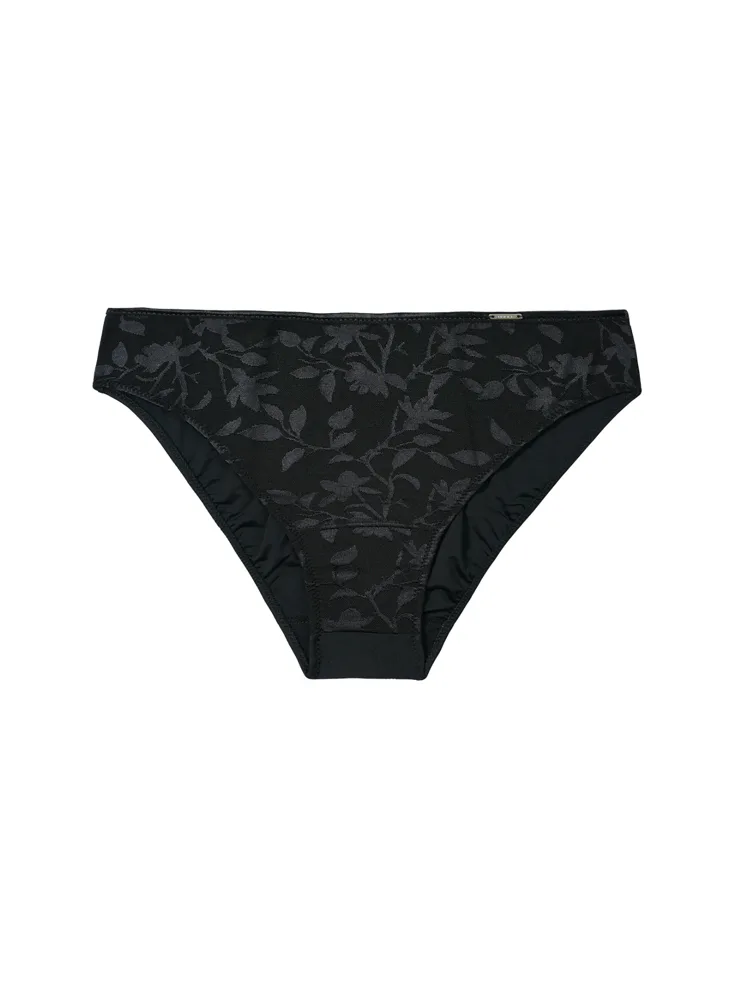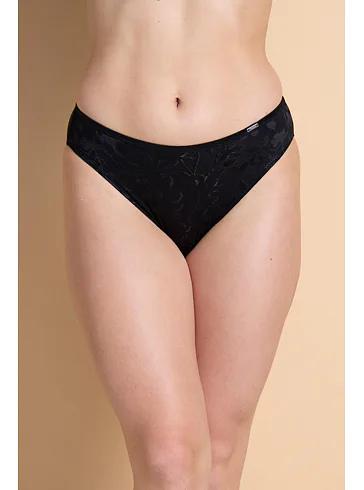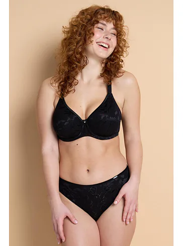 Nedělejte kompromisy mezi krásou a pohodlím, vyzkoušejte si u nás na prodejně kalhotky v klasickém střihu. Černé kalhotky z exkluzivního žakárového úpletu jsou příjemné na dotek, pružné a perfektně drží tvar. Přední díl zdobí květinový vzor, zatímco zadní díl z úpletu z mikrovlákna je krásně hladký. Ke kalhotkám lze pořídit i podprsenku v oblíbeném střihu Perfect-Fit či T-Fit.