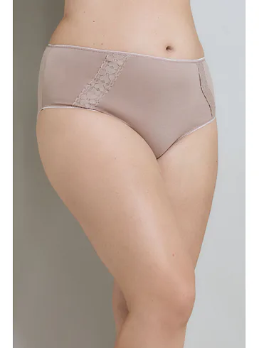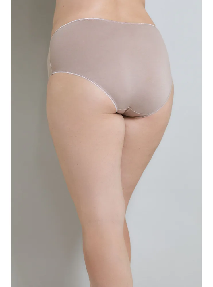 Kalhotky v tělové barvě s vyšším střihem podtrhnou vaše ženské křivky a zajistí vám pohodlí při celodenním nošení. Zadní část kalhotek je příjemně hladká, přední část zaujme kombinací materiálů. Kalhotky mají zesílený klín s froté vložkou, která minimalizuje riziko podráždění, výborně absorbuje pot a vyniká svou prodyšností. Bavlněné kalhotky jsou oblíbenou volbou pro ženy s citlivou pokožkou. Vybrat si lze kalhotky ve stejném střihu i v dalších barvách.