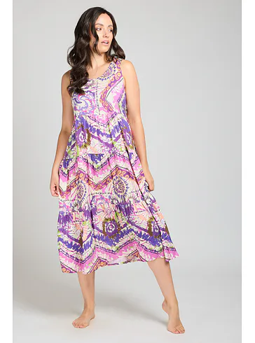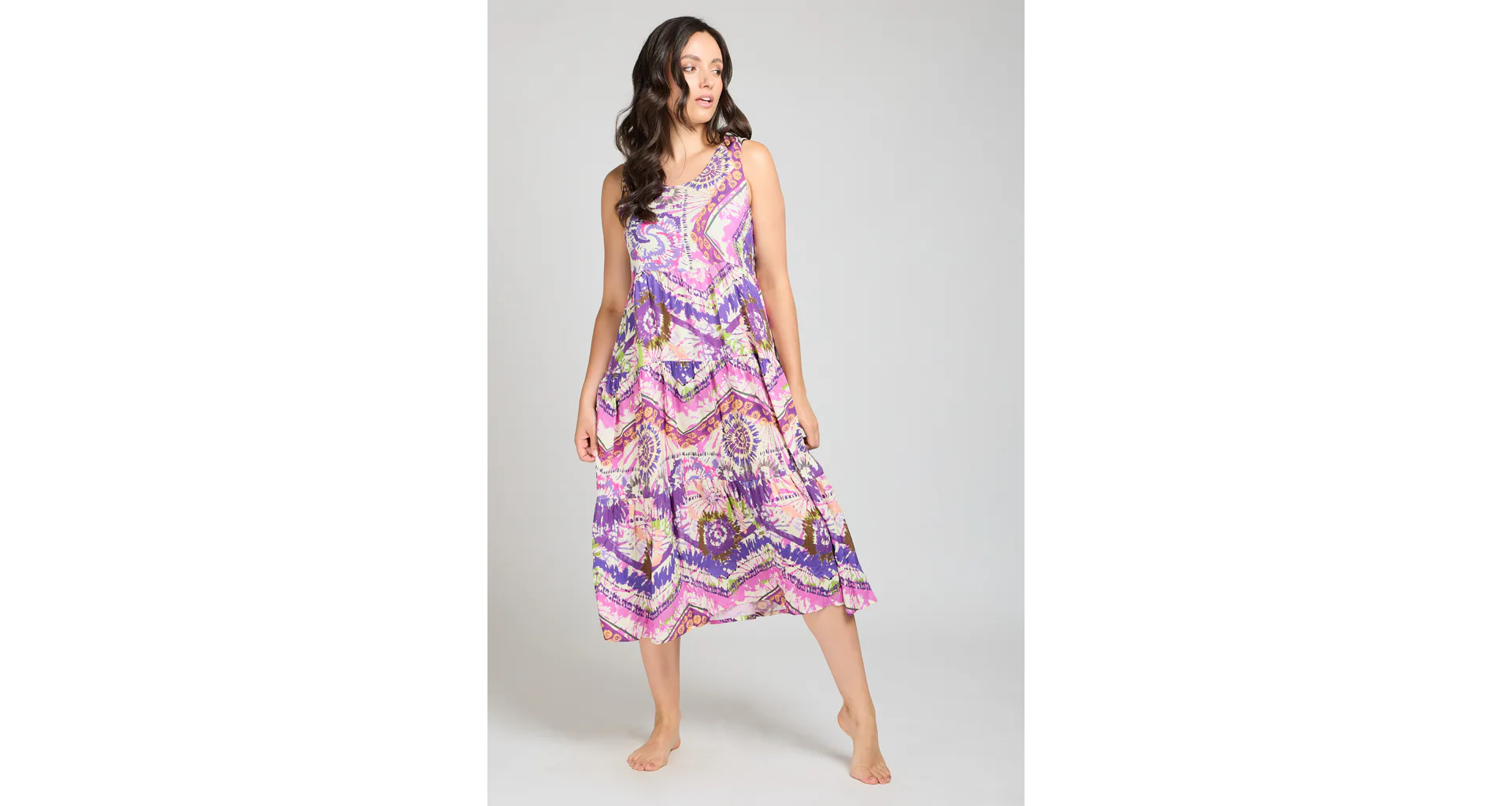 Letní šaty z jemné viskózy jsou příjemně vzdušné a umožňují pokožce volně dýchat. Vytváří krásnou siluetu a představují skvělou volbu pro horké letní dny. Zaujmou bohémským barevným vzorem a výstřihem do písmene V, který upoutá pozornost k vašemu dekoltu. Šaty mají širší pohodlná ramínka a délku ke kotníkům. Dopřejte si šaty, ve kterých budete zářit při každé příležitosti.
