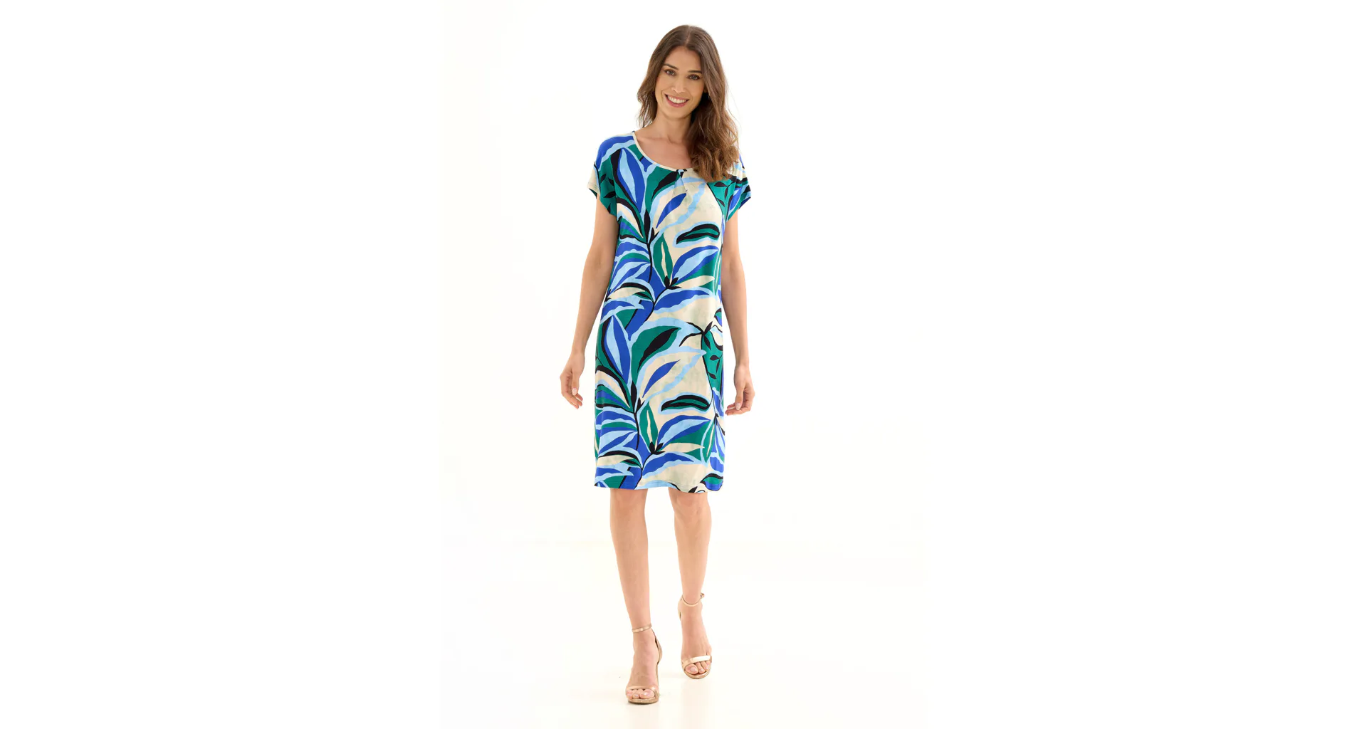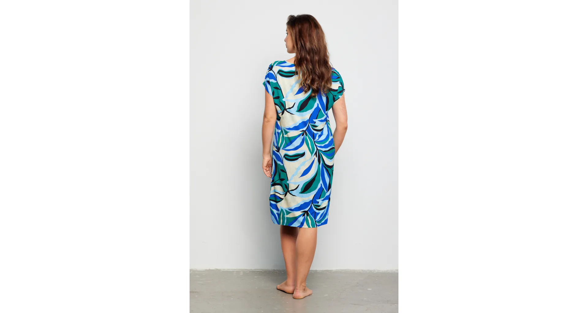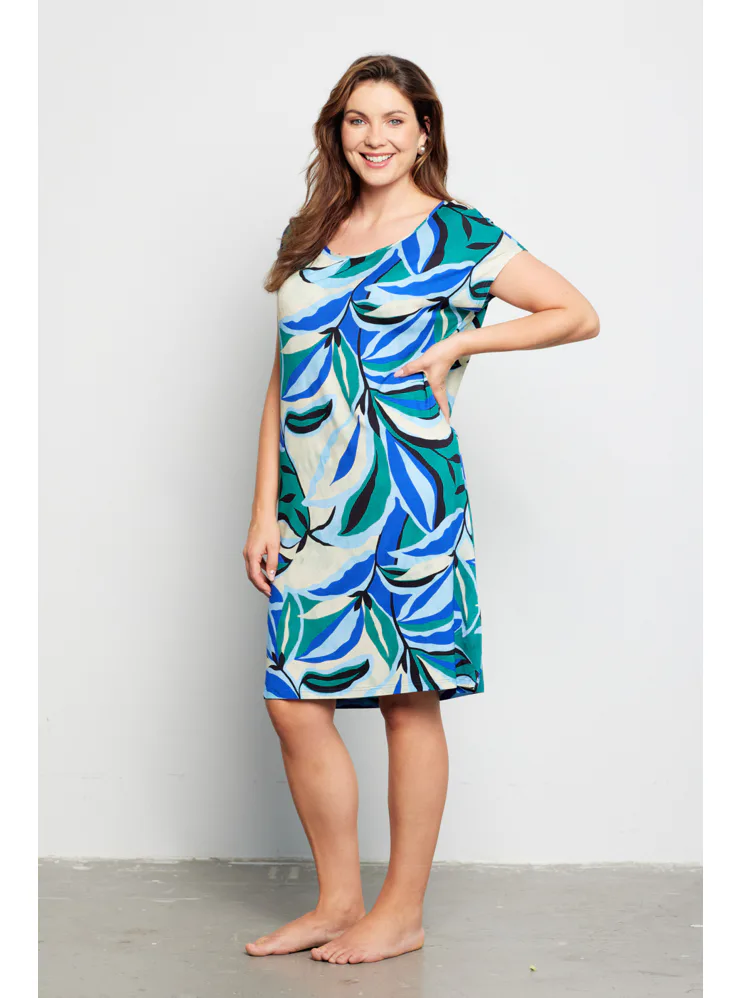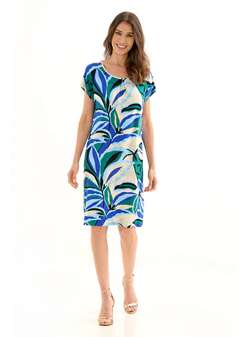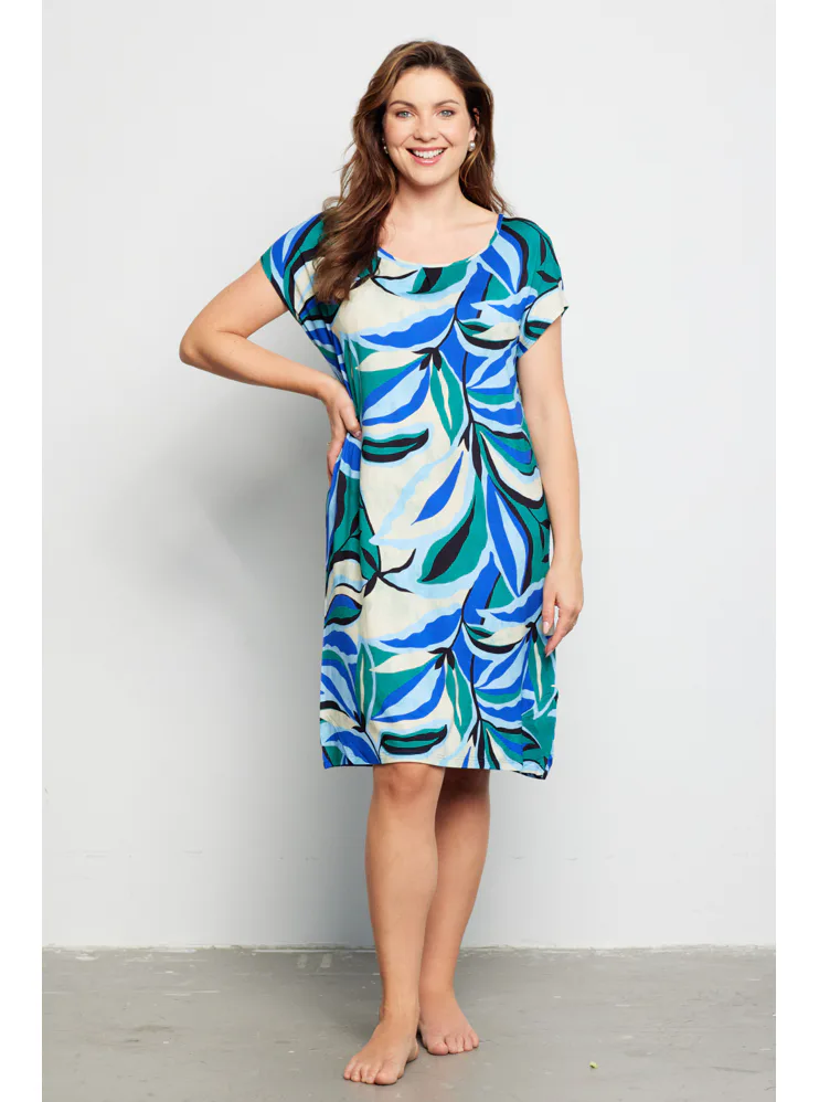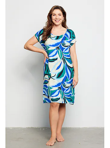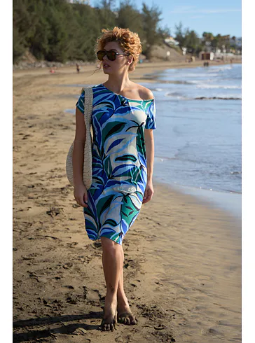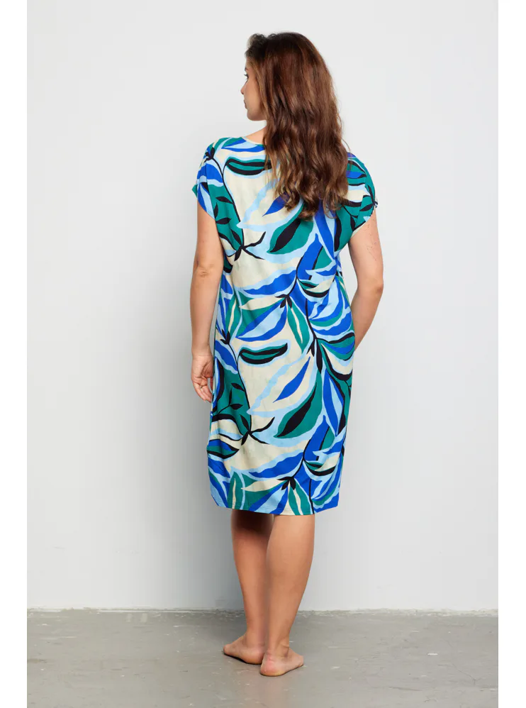 Letní šaty zaujmou barevným tropickým vzorem, který jim dodává exotický nádech a svěžest. Šaty rovného střihu zajistí vzdušnost a lehkost, mají klasický kulatý výstřih a délku ke kolenům. Vyrobeny jsou z viskózy, která vás uchvátí svou hebkostí a splývavostí. Krátký volný rukáv podtrhuje vzdušný styl šatů, ideální do horkých letních dnů. Šaty pořídíte až do velikosti 48.