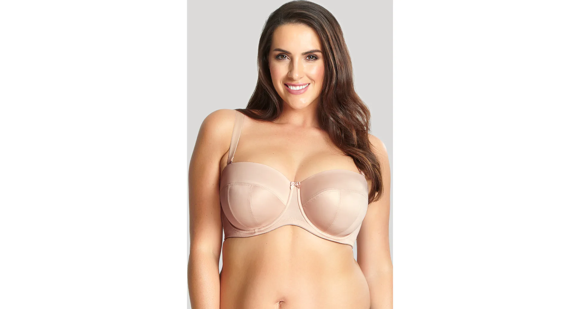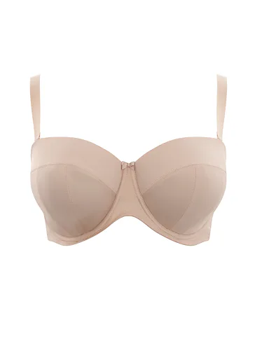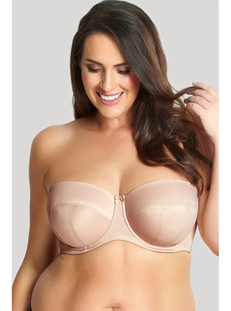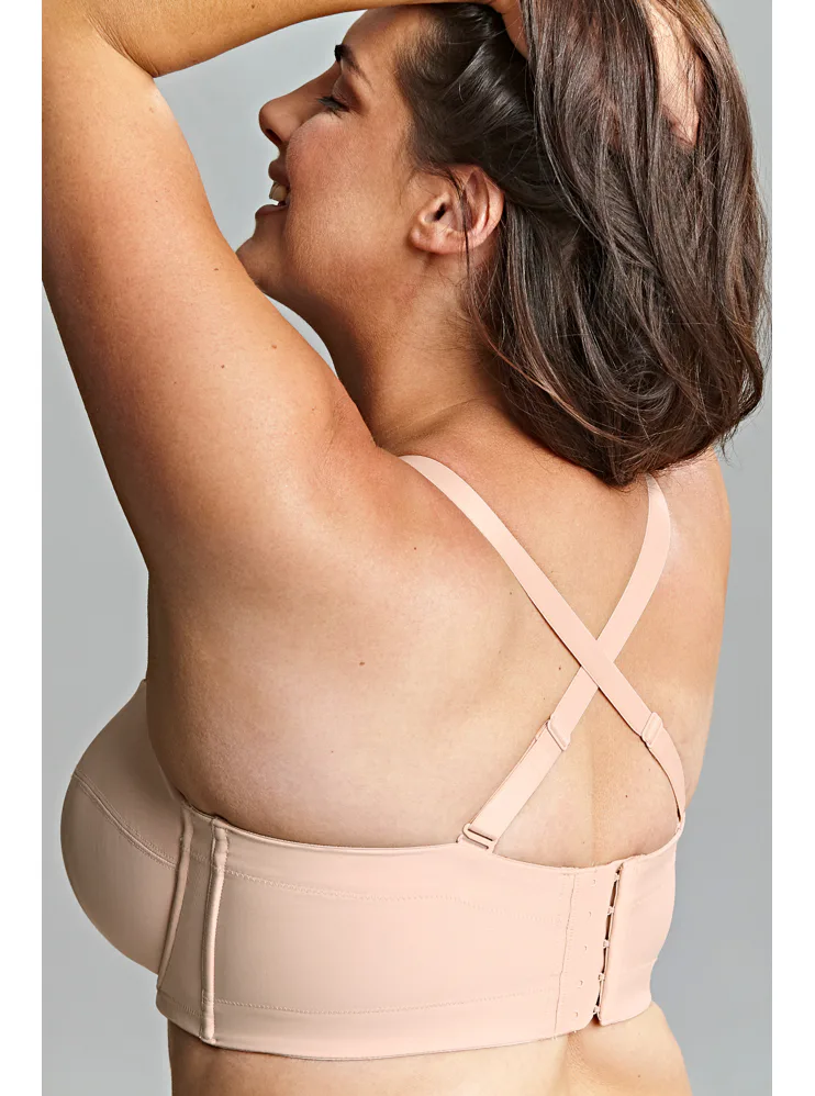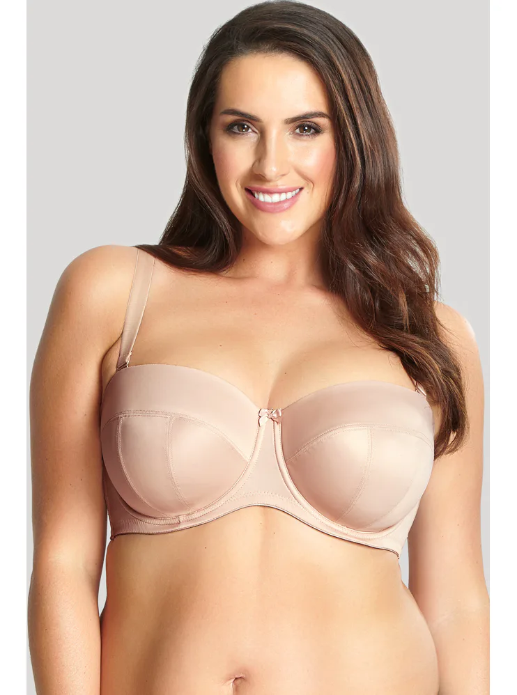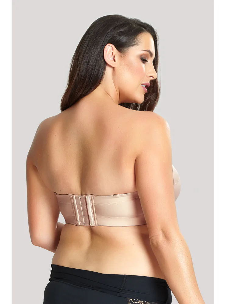 Samodržící balkonová podprsenka Panache díky prošitým košům udrží bez ramínek i opravdu velké poprsí. Silikonový pásek po celém obvodu zajistí, že vám podprsenka bude dobře sedět na místě. Vyztužené košíčky se přizpůsobí tvaru poprsí a poskytují pevnější oporu. Ramínka lze odepnout nebo zapnout do kříže a široké zapínání má vzadu na zádech. Tělová podprsenka má klasické a boční kostice, které pomáhají držet prsa pevně u sebe a vytváří přirozenější a plnější vzhled poprsí. Ideální volba pro ženy, které hledají komfort, oporu a eleganci.