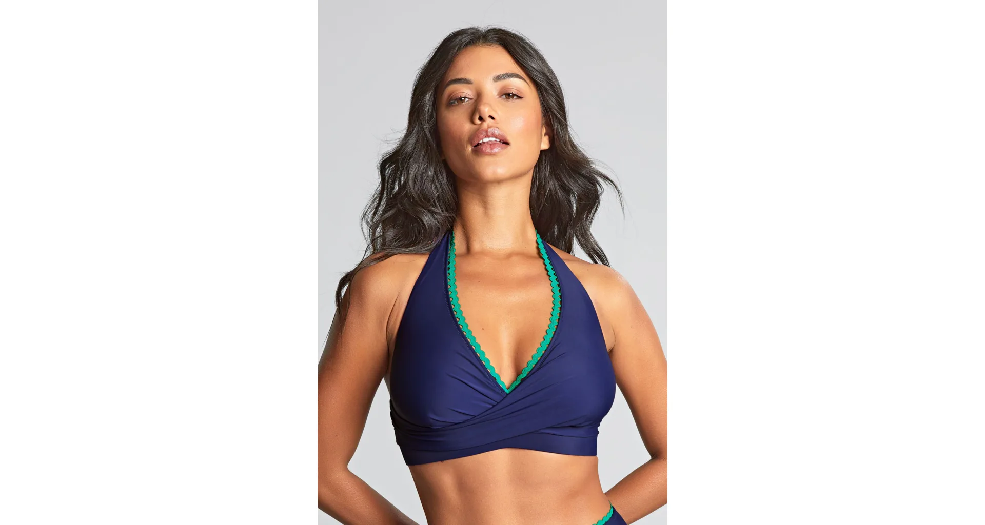 Zazařte na pláži nebo u bazénu v elegantní bikinové podprsence pro větší prsa Panache. Podprsenka se přizpůsobí přirozenému tvaru prsou a díky překřížení poskytne potřebnou oporu.