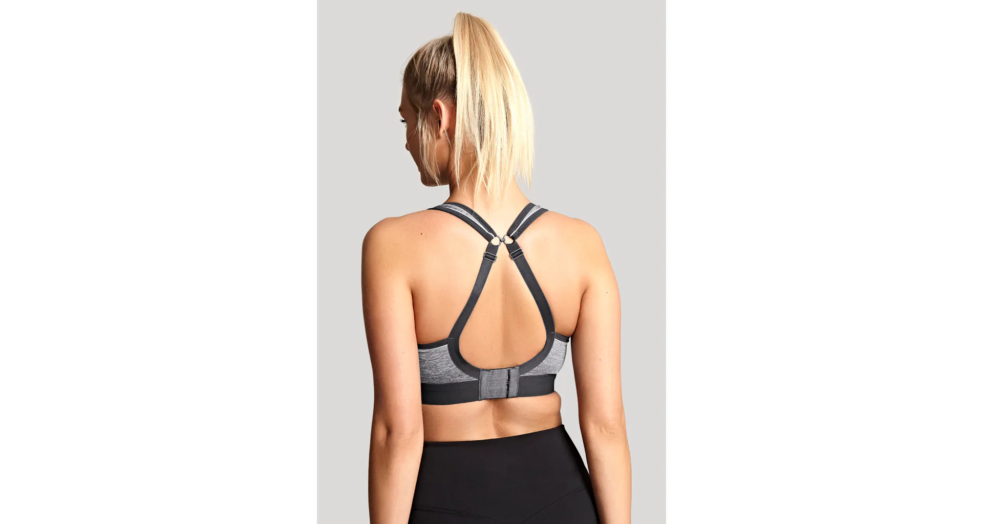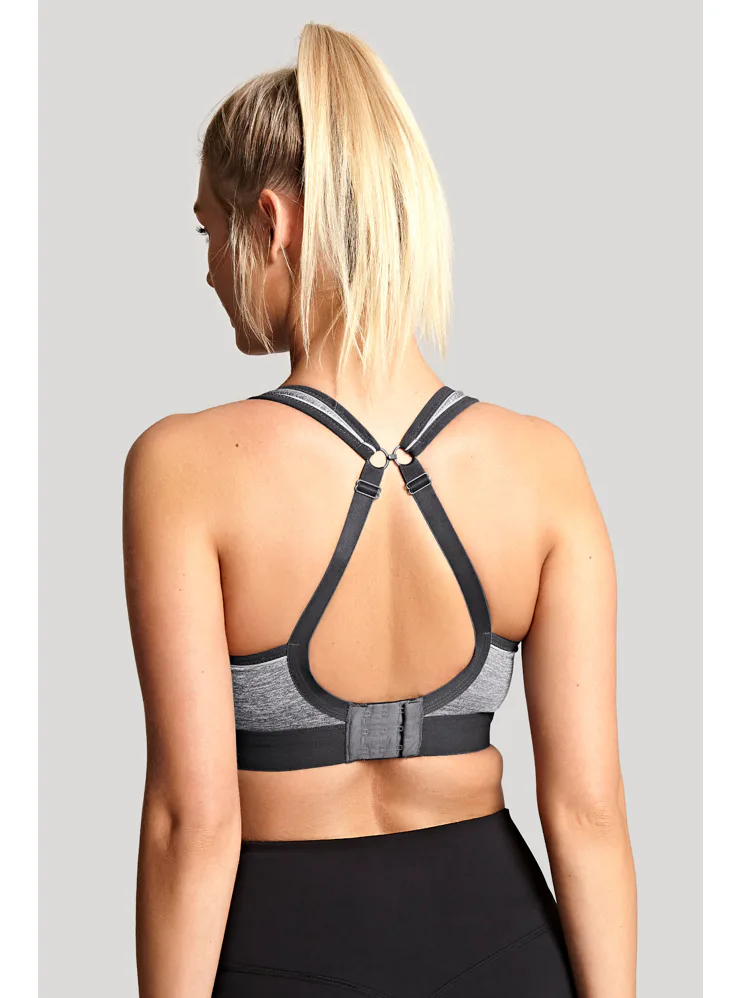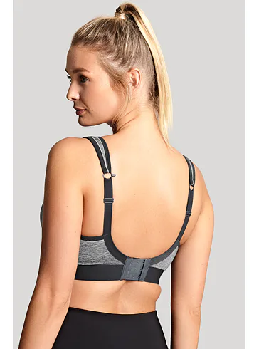 Podprsenka bez kostic poprsí pevně zafixuje a sníží jeho pohyblivost. Při sportu jsou prsa vystavena intenzivnímu pohybu, který může nadměrně zatěžovat pojivovou tkáň. Správně zvolená sportovní podprsenka poskytne vašemu poprsí potřebnou oporu a ochrání ho před poškozením. Šedá podprsenka s měkce podloženými ramínky vás nebude nikde tlačit. Zapínání má vzadu na tři háčky se třemi polohami stažení a ramínka lze sepnout i do kříže. Lehký a vysoce prodyšný materiál z mikrovláken účinně odvádí vlhkost od pokožky, zajišťuje maximální komfort a předchází podráždění.