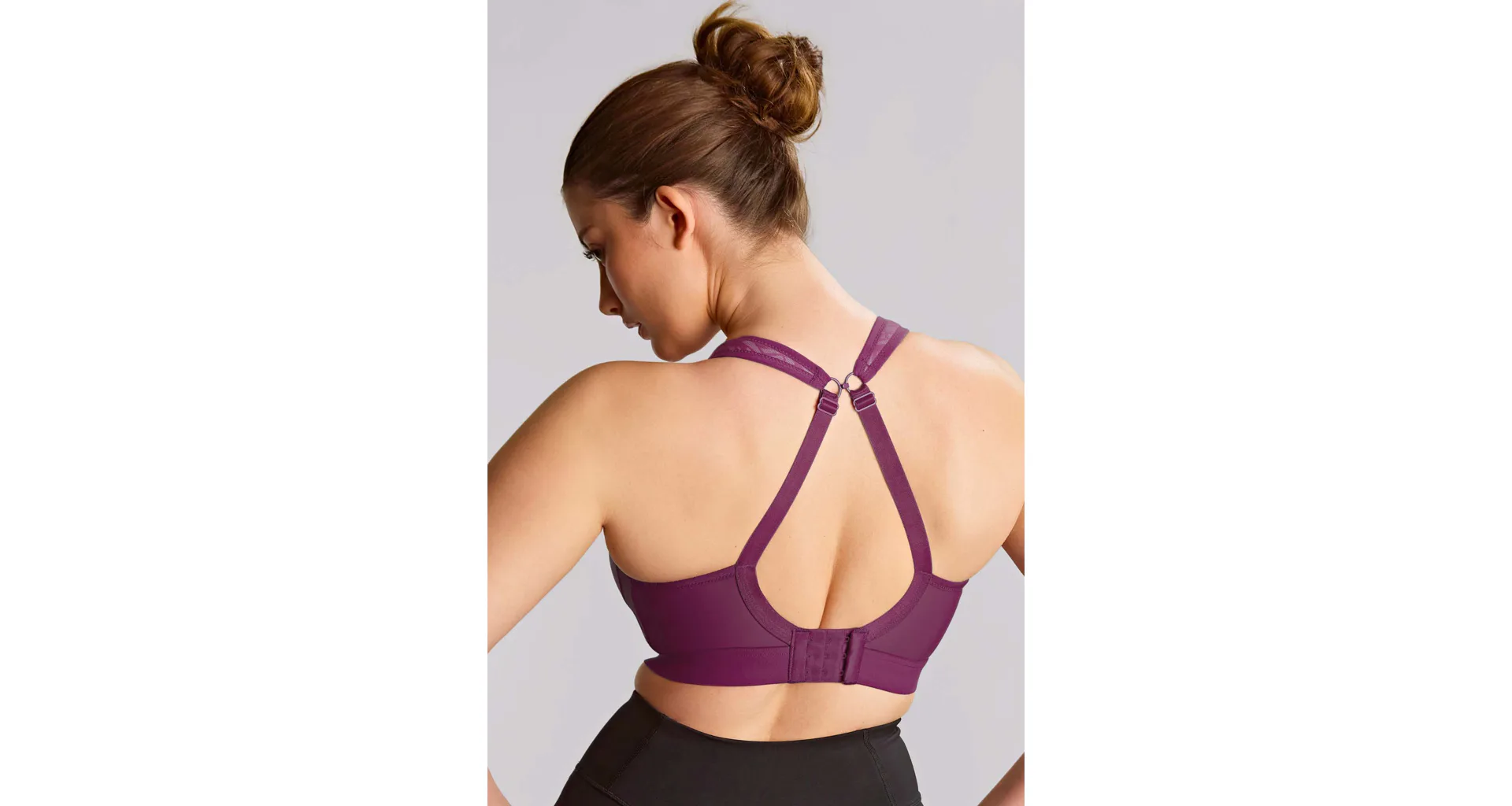 Podprsenka bez kostic poprsí pevně zafixuje a sníží jeho pohyblivost. Při sportu jsou prsa vystavena intenzivnímu pohybu, který může nadměrně zatěžovat pojivovou tkáň. Správně zvolená sportovní podprsenka poskytne vašemu poprsí potřebnou oporu a ochrání ho před poškozením. Vínová podprsenka s měkce podloženými ramínky vás nebude nikde tlačit. Zapínání má vzadu na tři háčky se třemi polohami stažení a ramínka lze sepnout i do kříže. Lehký a vysoce prodyšný materiál z mikrovláken účinně odvádí vlhkost od pokožky, zajišťuje maximální komfort a předchází podráždění.