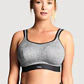 Podprsenka bez kostic poprsí pevně zafixuje a sníží jeho pohyblivost. Při sportu jsou prsa vystavena intenzivnímu pohybu, který může nadměrně zatěžovat pojivovou tkáň. Správně zvolená sportovní podprsenka poskytne vašemu poprsí potřebnou oporu a ochrání ho před poškozením. Šedá podprsenka s měkce podloženými ramínky vás nebude nikde tlačit. Zapínání má vzadu na tři háčky se třemi polohami stažení a ramínka lze sepnout i do kříže. Lehký a vysoce prodyšný materiál z mikrovláken účinně odvádí vlhkost od pokožky, zajišťuje maximální komfort a předchází podráždění.