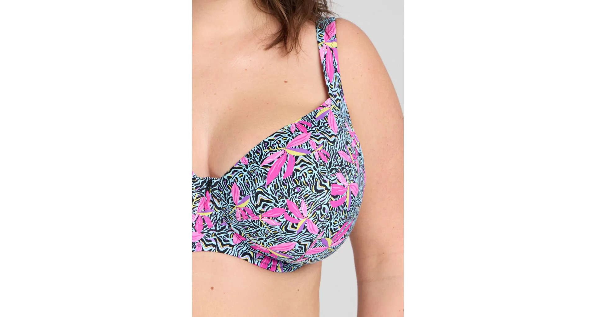 Chystáte se na letní dovolenou? Přibalte si s sebou do kufru plavkovou podprsenku Riva ve střihu Comfy-Fit, která vás uchvátí letním barevným vzorem. Ideální pro velká prsa.