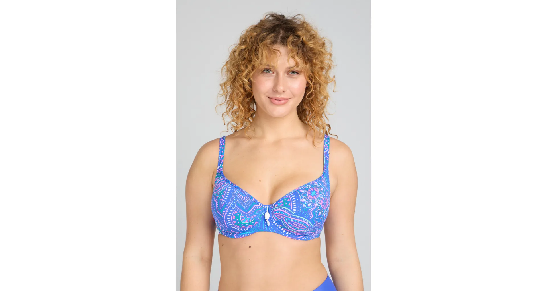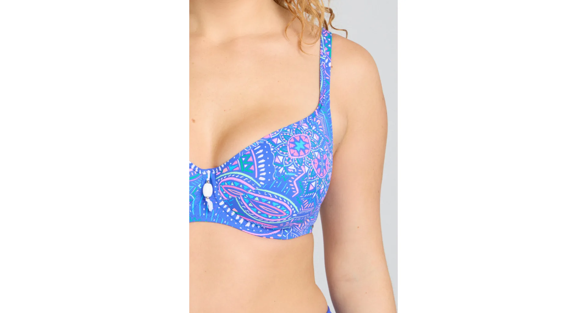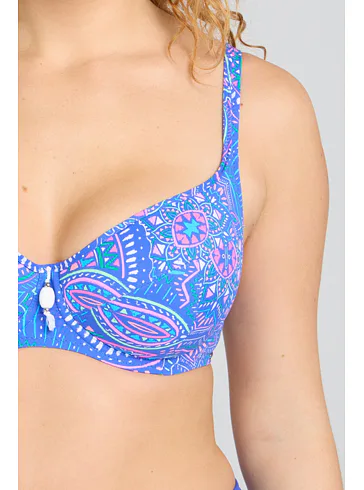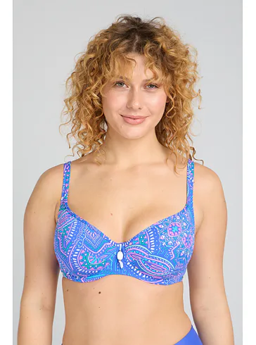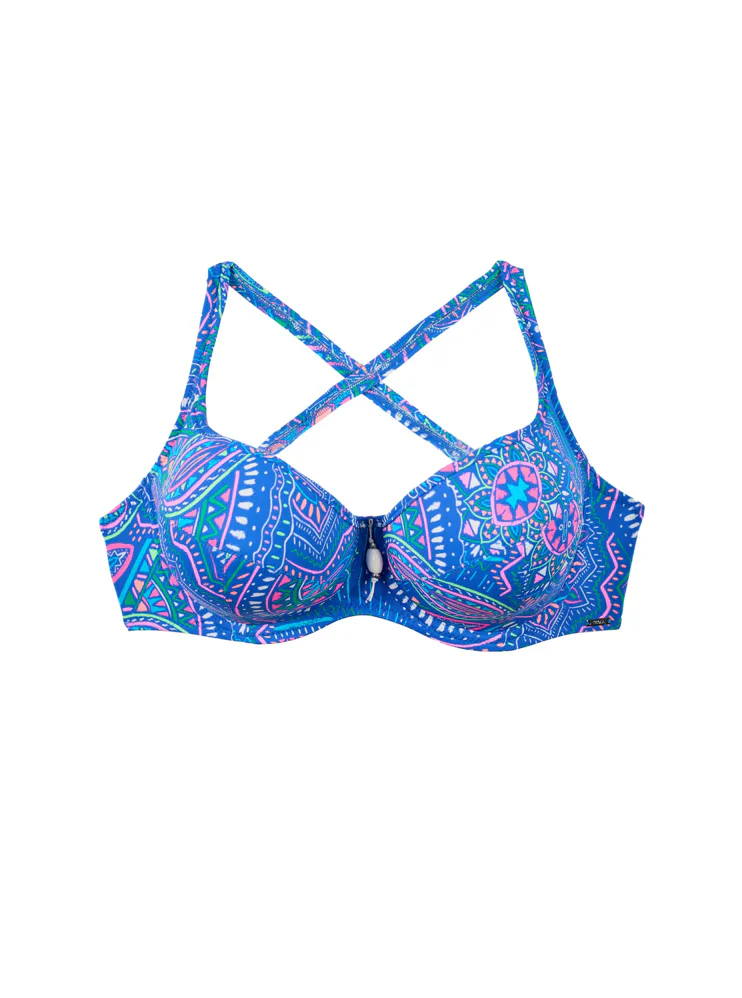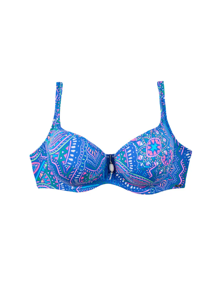 Přivítejte léto v plavkách z nové letní kolekce Triola 2025. Plavková podprsenka Indigo zaujme barevným boho vzorem a vytvoří přirozeně kulatý tvar prsou.