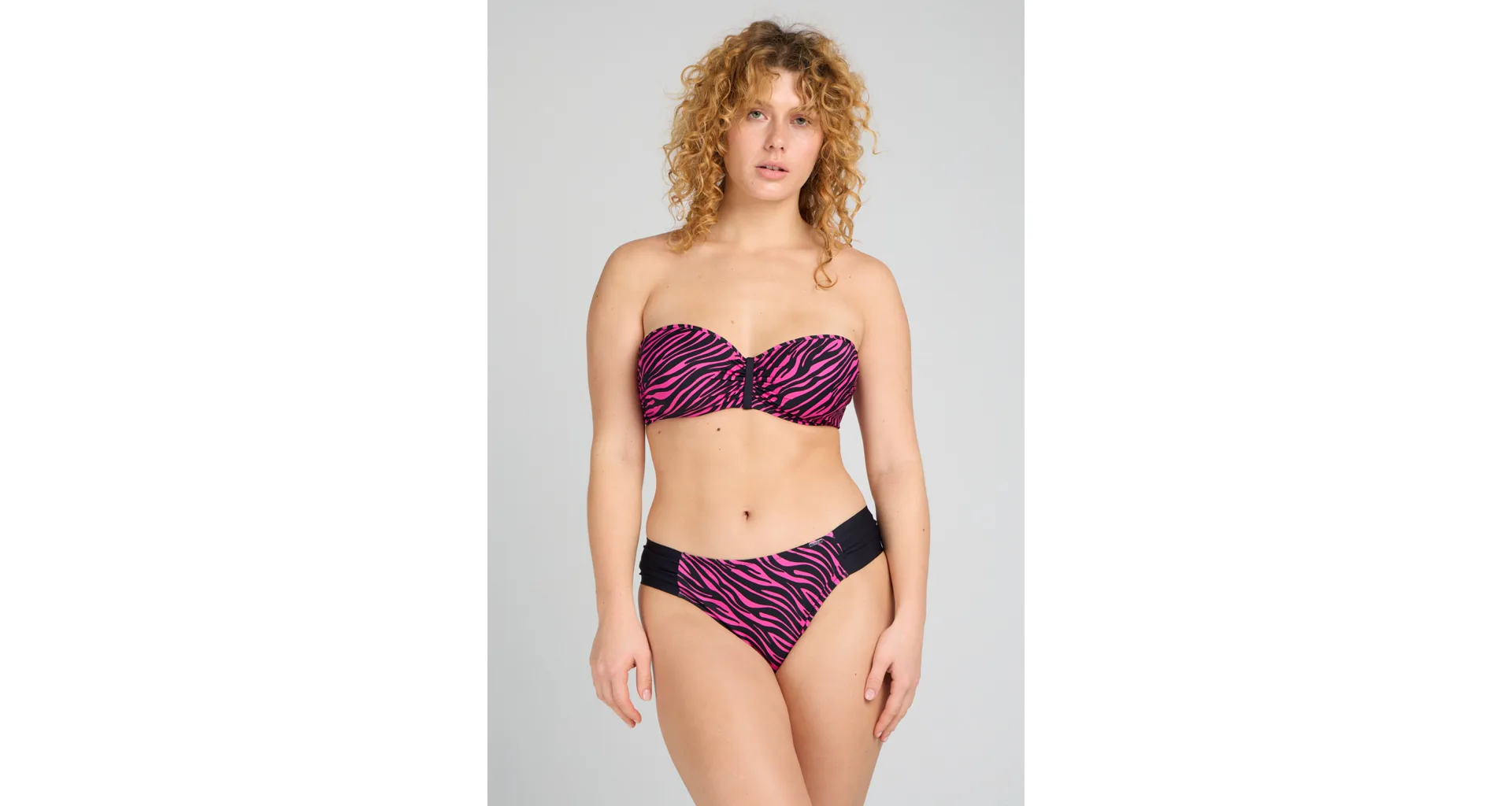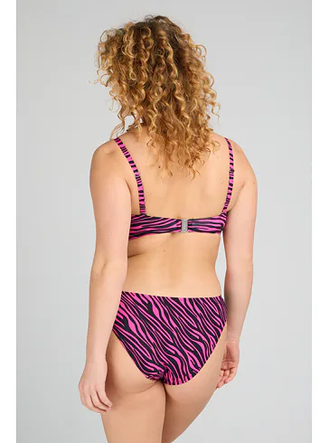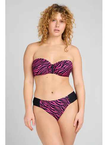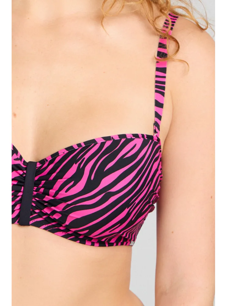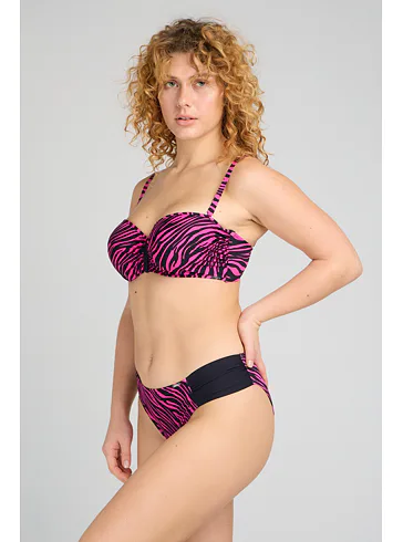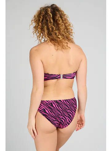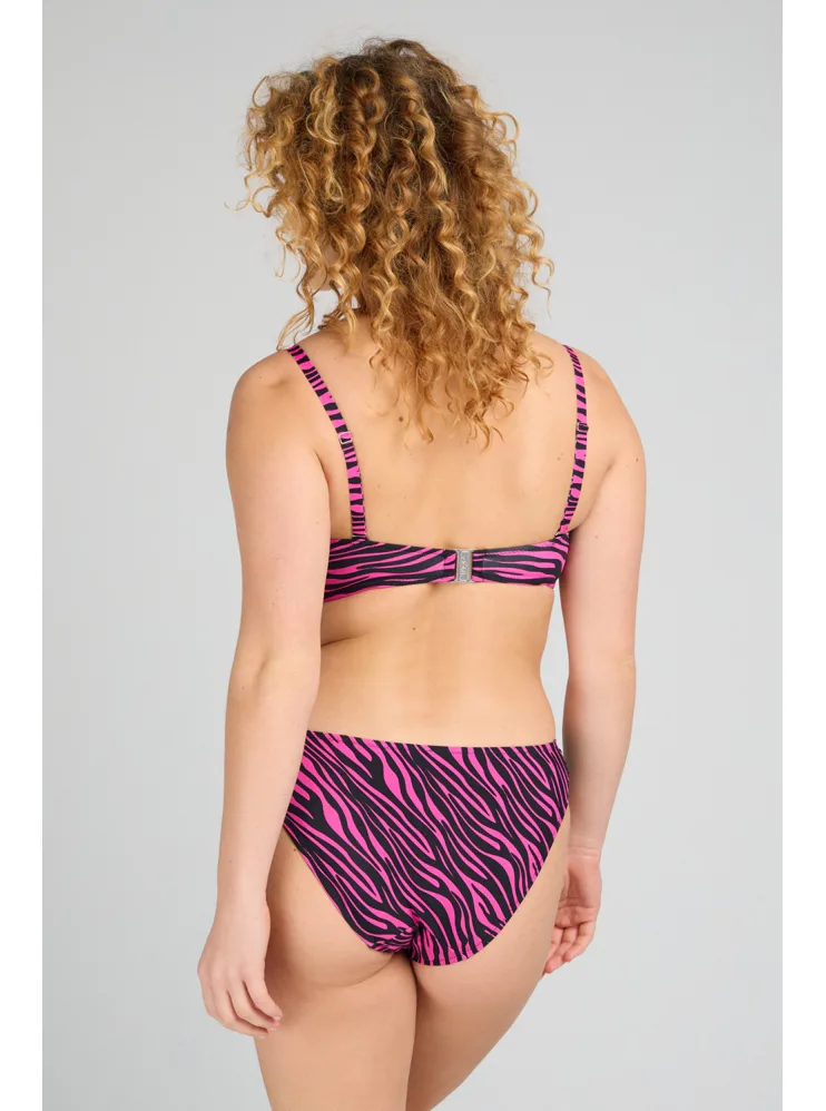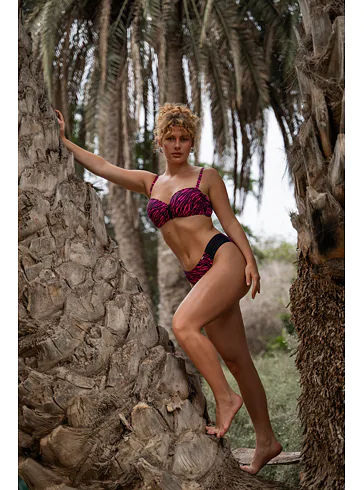 Užijte si letní pohodu v plavkách Triola z nové kolekce 2025. Sytě růžové plavky s trendy zebřím vzorem v černé barvě vytvoří sexy dekolt a přizpůsobí se vašim křivkám.
