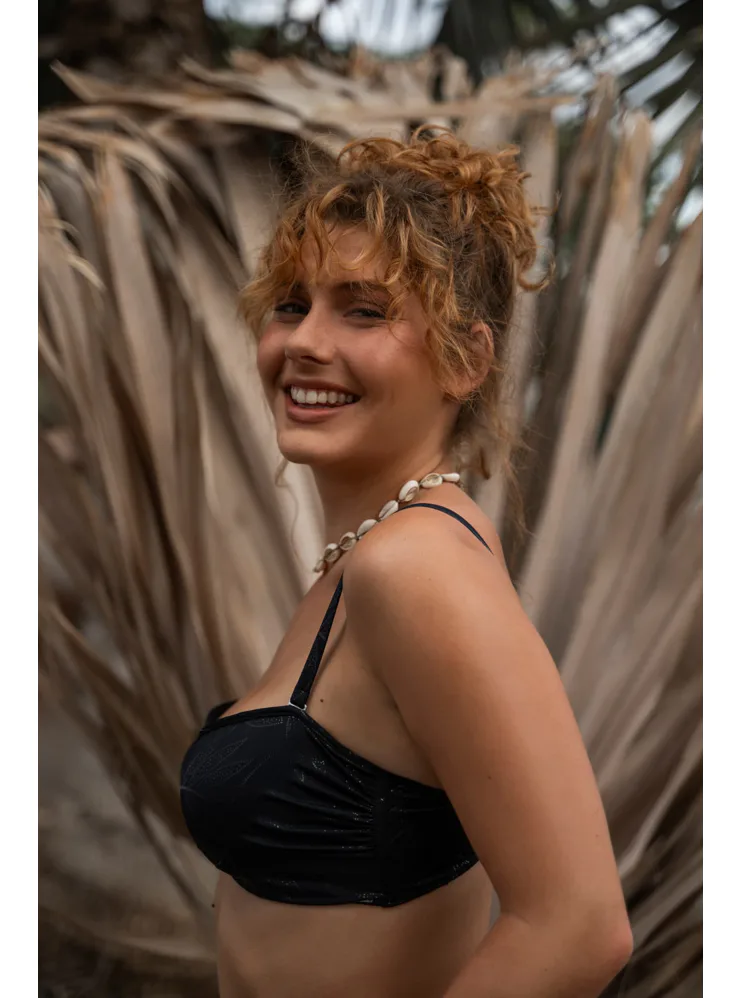 Objevte perfektní kombinaci elegance a funkčnosti. Černá plavková podprsenka s kosticemi poskytne poprsí potřebnou oporu a zajistí maximální komfort při celodenním nošení.