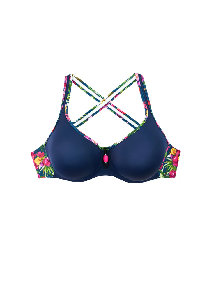 Připravte se na chvíle strávené u vody a pořiďte si plavky z nové letní kolekce Triola 2025. Dokonale padnoucí bezešvá plavková podprsenka Blossom prsa pozvedne do ideální výšky. Ideální pro velká prsa.