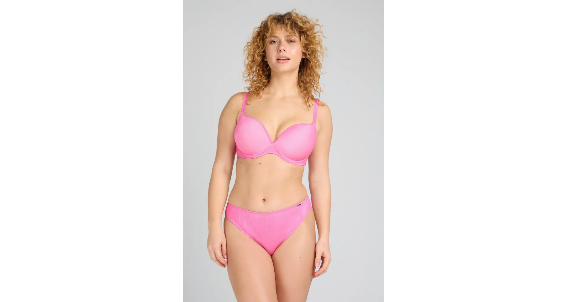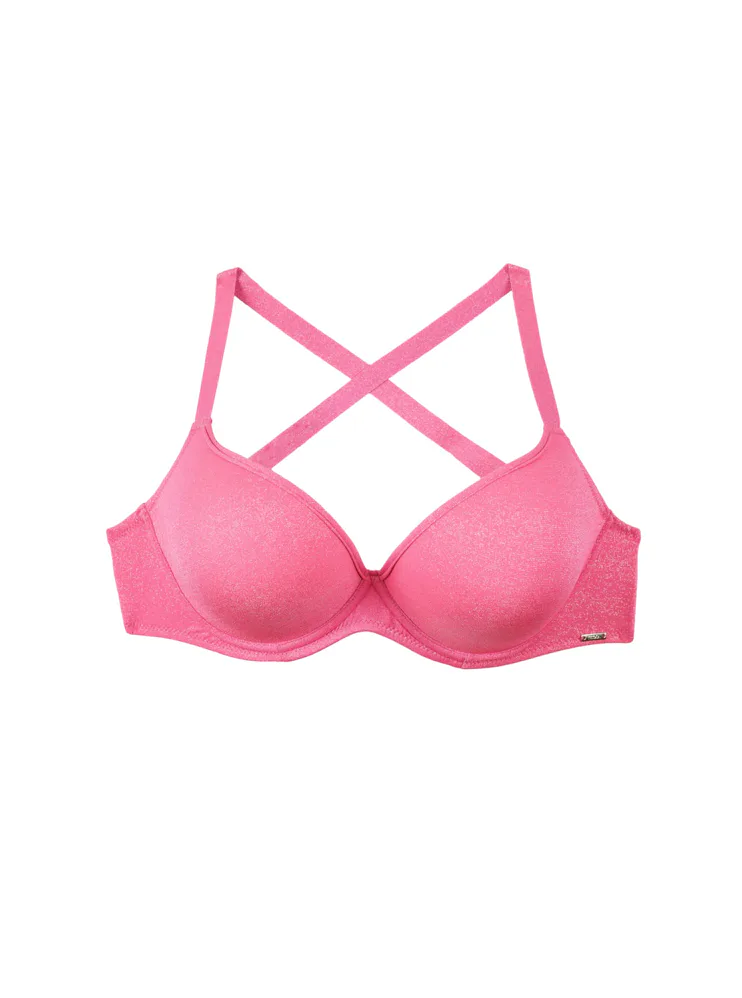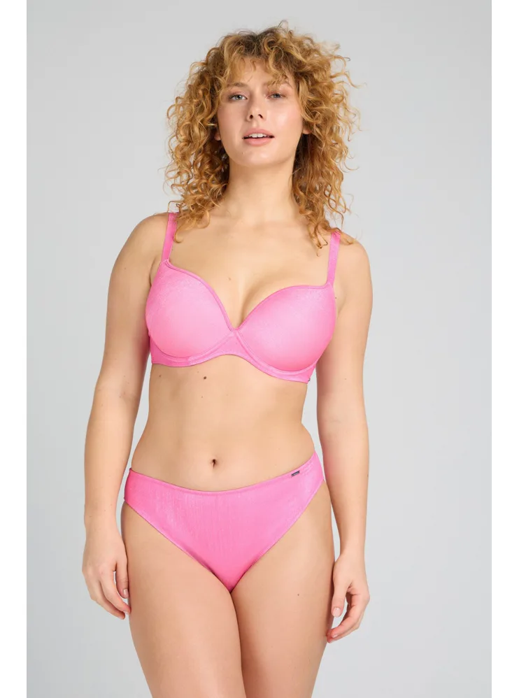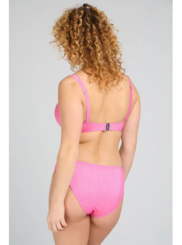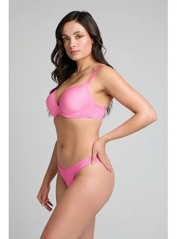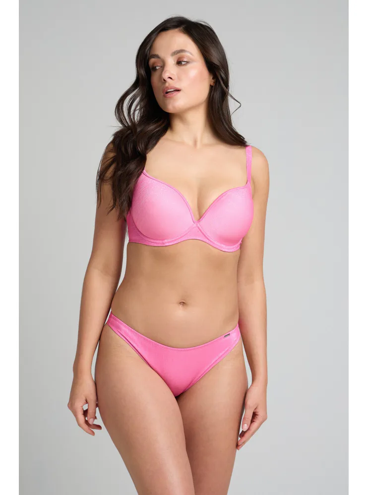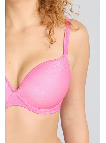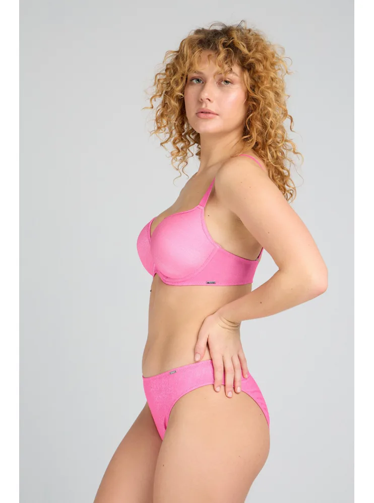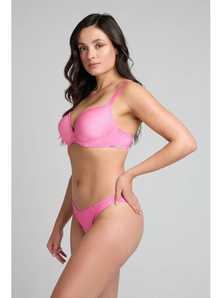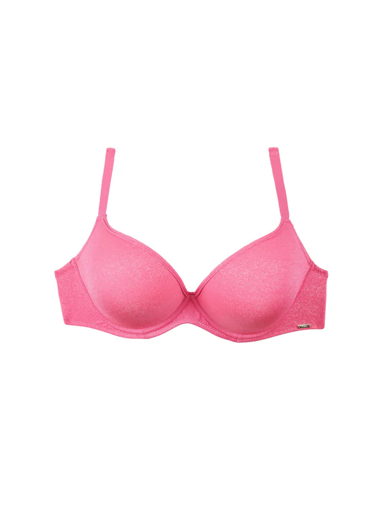 Bezešvá plavková podprsenka v růžové barvě zaujme třpytivým efektem. Přizpůsobí se vašemu pohybu a poskytne poprsí potřebnou oporu. Lurexové vlákno díky svému metalickému efektu působí luxusně a elegantně, neztrácí lesk a vyniká odolností proti oděru a roztržení. Lepená ramínka jsou vyrobena bez šitých švů. Pořiďte si plavky Triola a staňte se královnou pláže.