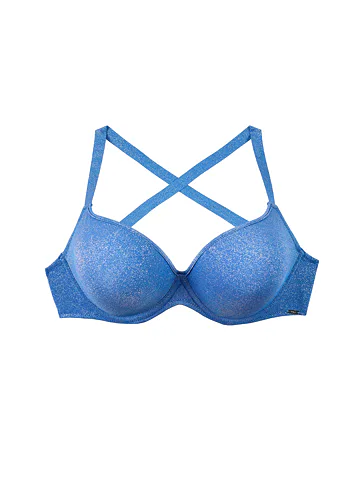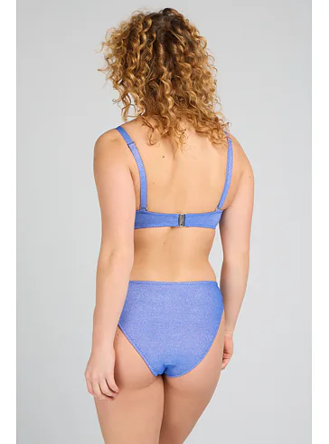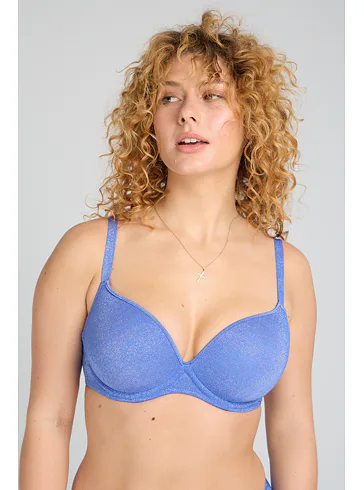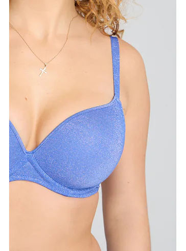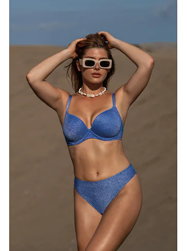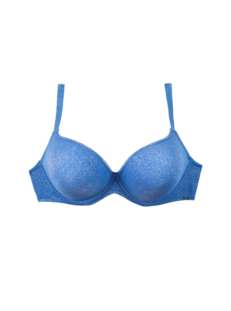 Bezešvá plavková podprsenka ve světle modré barvě zaujme třpytivým efektem. Přizpůsobí se vašemu pohybu a poskytne poprsí potřebnou oporu. Lurexové vlákno díky svému metalickému efektu působí luxusně a elegantně, neztrácí lesk a vyniká odolností proti oděru a roztržení. Lepená ramínka jsou vyrobena bez šitých švů. Pořiďte si plavky Triola a staňte se královnou pláže.