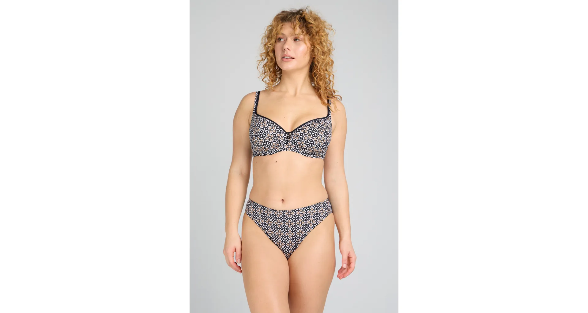 Získejte dokonalé bronzové opálení ve dvoudílných plavkách Triola. Klasické plavkové kalhotky Mosaic perfektně sednou každé postavě a poskytují plné krytí zadečku.