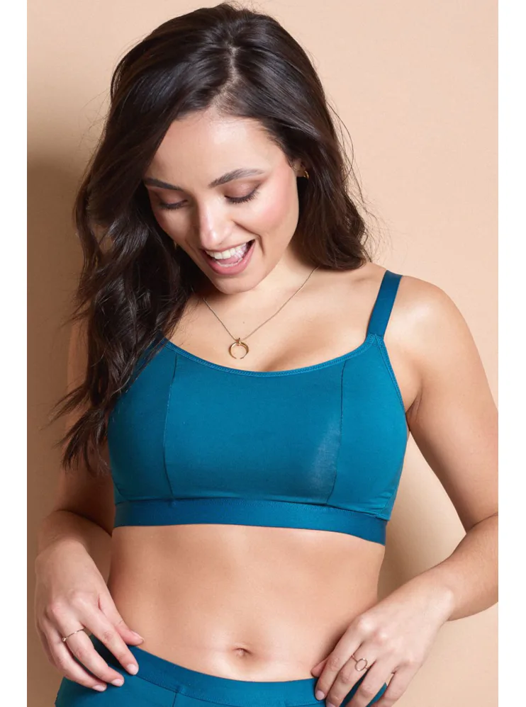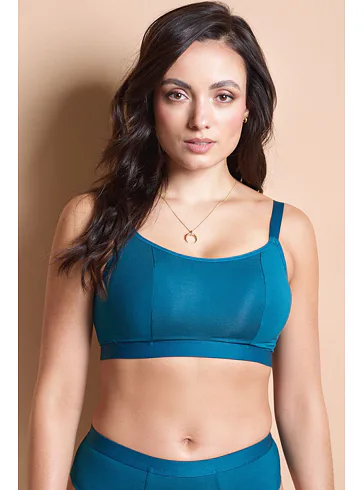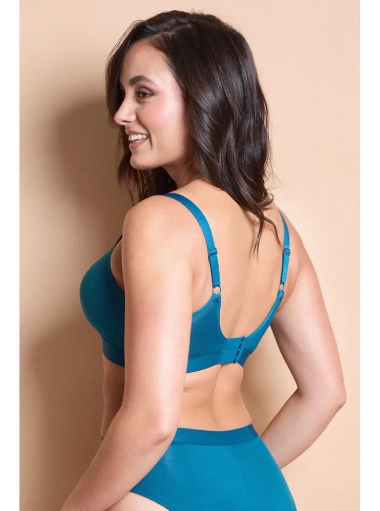 Braletka od Panache v petrolejovém odstínu disponuje nastavitelnými ramínky a zapínáním vzadu na tři háčky. Elastan zajišťuje, že se perfektně přizpůsobí křivkám vašeho těla, zatímco měkká guma poskytuje maximální pohodlí. Tato braletka bez kostic fixuje poprsí bez tlačení a je vyrobena z modalové tkaniny s chladivými a antibakteriálními vlastnostmi.