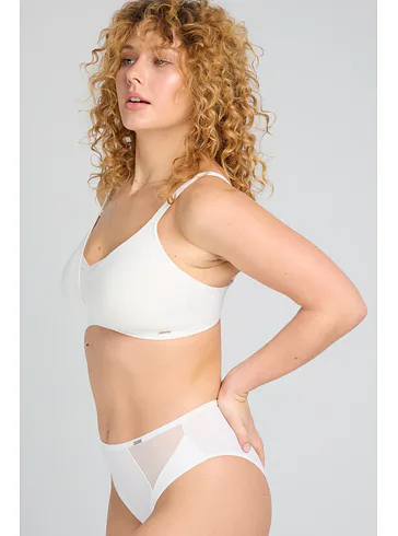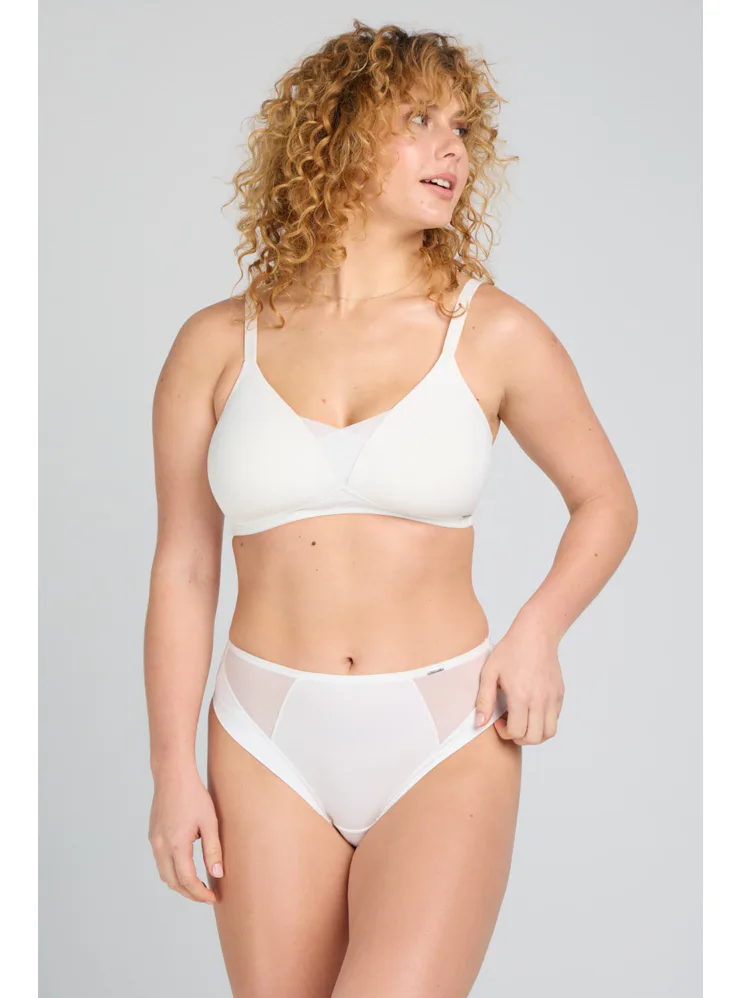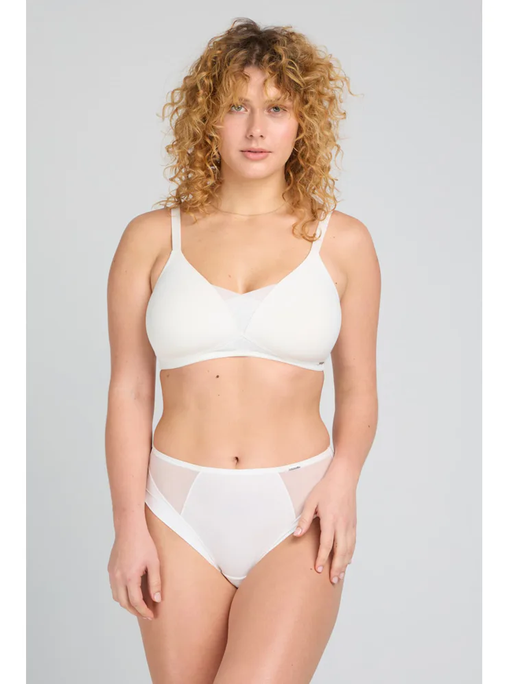Podprsenka bez kostic ve střihu Soft-Fit zaujme tylovou vsadkou ve výstřihu, která udrží prsa na svém místě. Perlová podprsenka v hladkém provedení se nerýsuje pod přiléhavým oblečením. Zaručuje pocit volnosti a maximální komfort při celodenním nošení. Je ideální pro ženy milující minimalistický styl. Doporučujeme ji doplnit o klasické perlové kalhotky do setu, se kterými vytvoříte dokonale sladěný komplet.