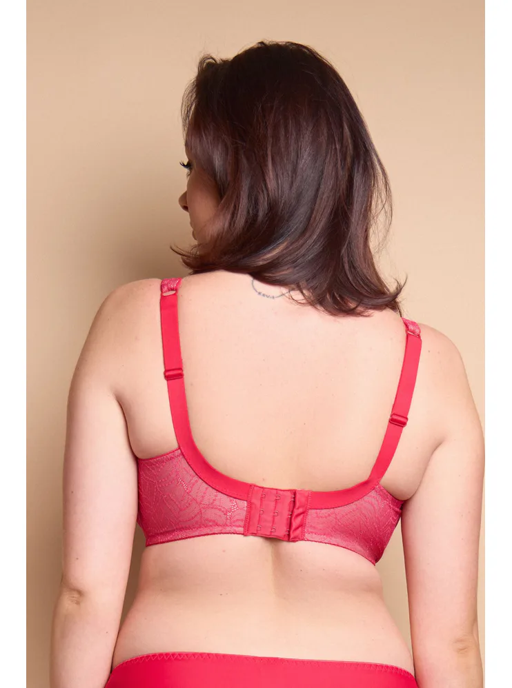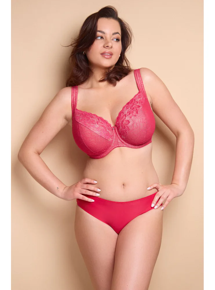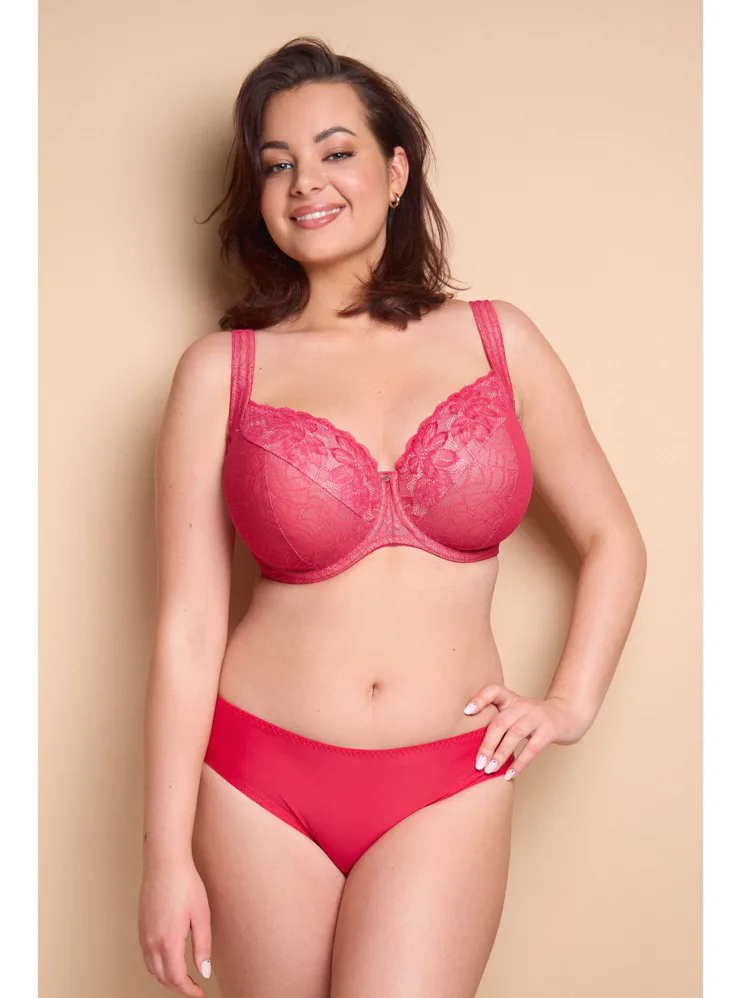Nevyztužená podprsenka z limitované kolekce Harmonie vás nadchne svou sytě třešňovou červenou krajkou od německého dodavatele Chanty. Široká ramínka podprsenky jsou měkká, nikde netlačí a mají praktické variabilní posunovače. Nechte se hýčkat kvalitním spodním prádlem.