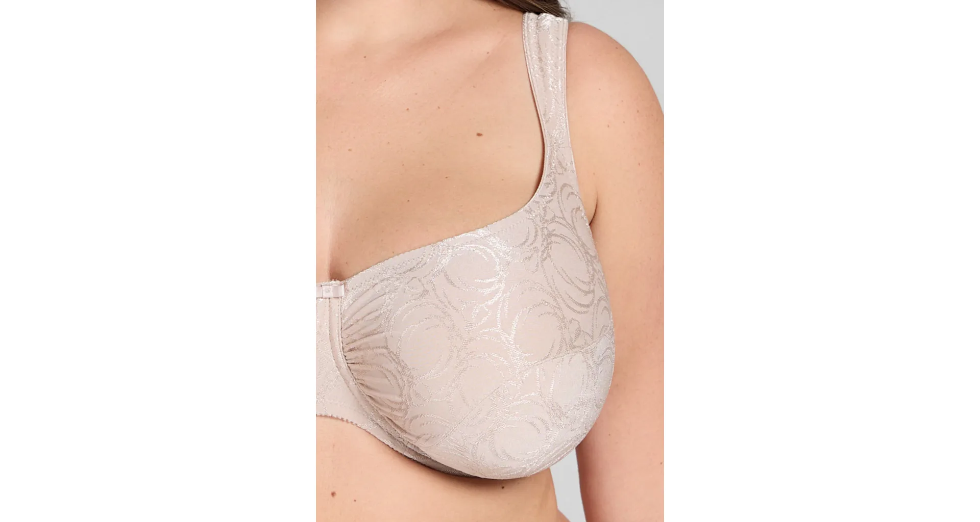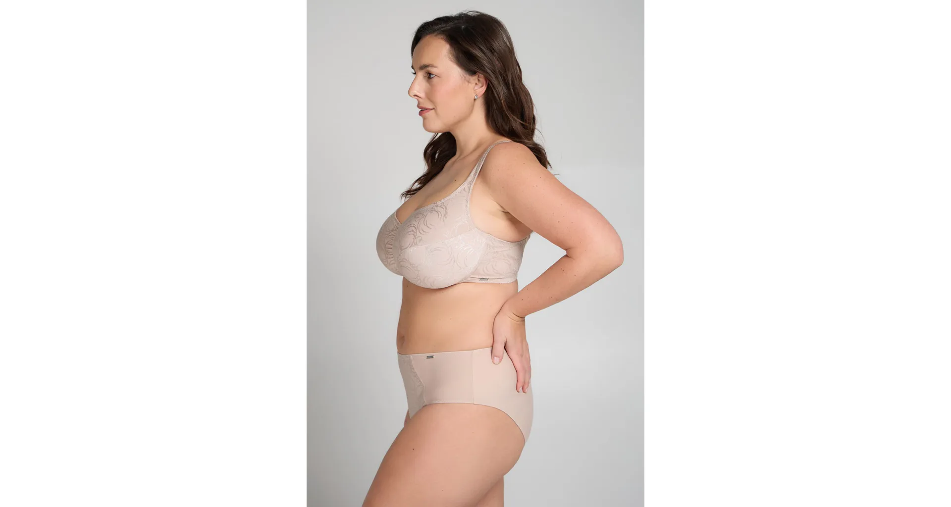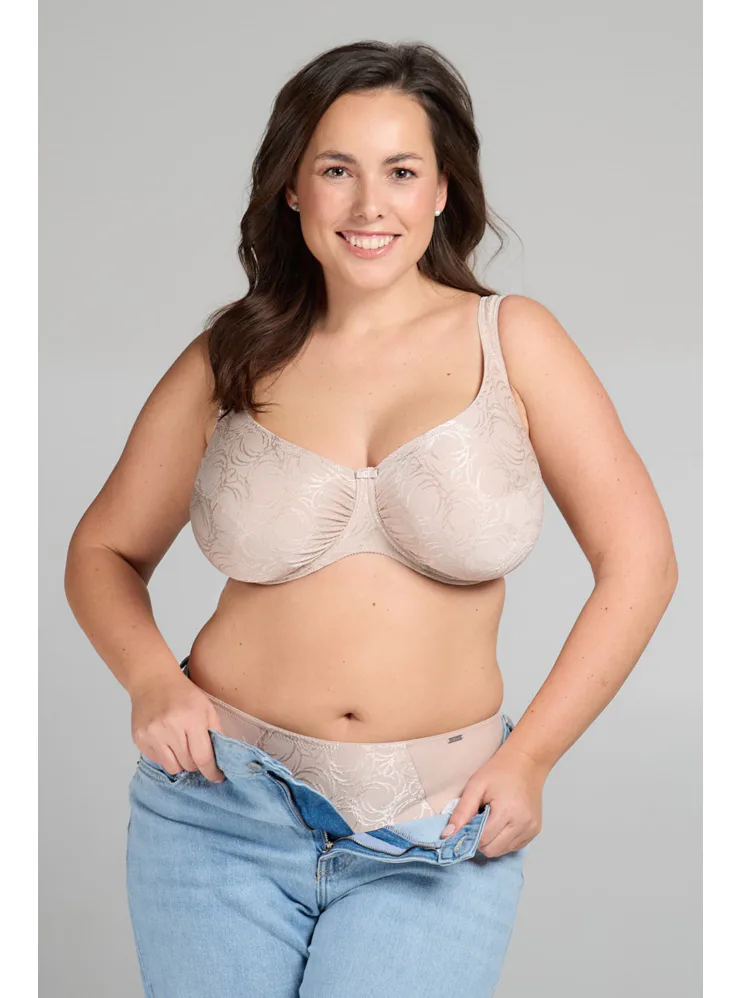 Dámská podprsenka Eiva v cappuccino barvě zaujme luxusním jemným žakárem. Nevyztužená podprsenka s flexi kosticemi ve střihu Comfy-Fit je perfektně uzpůsobena pro velká a těžká prsa. Dokonale se přizpůsobí vašim křivkám a prsa zafixuje na středu. Podložená široká ramínka pomáhají rovnoměrně rozložit váhu prsou, nikde netlačí a nezařezávají se. Zapínání má vzadu na háčky. Dopřejte si atraktivní spodní prádlo, ve kterém se budete cítit sebevědomě a komfortně.