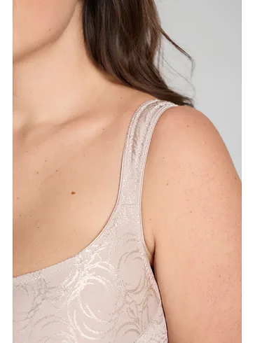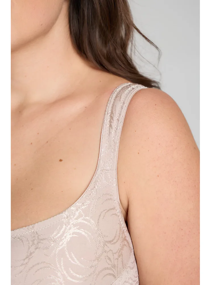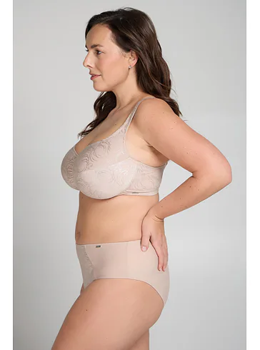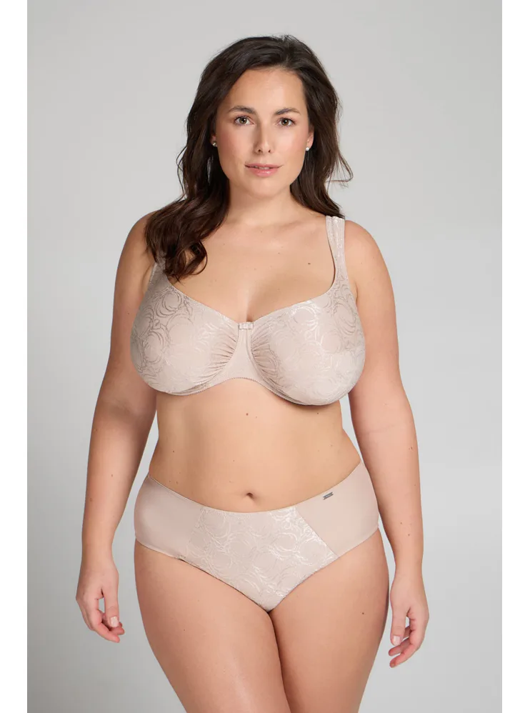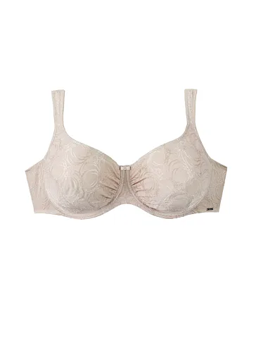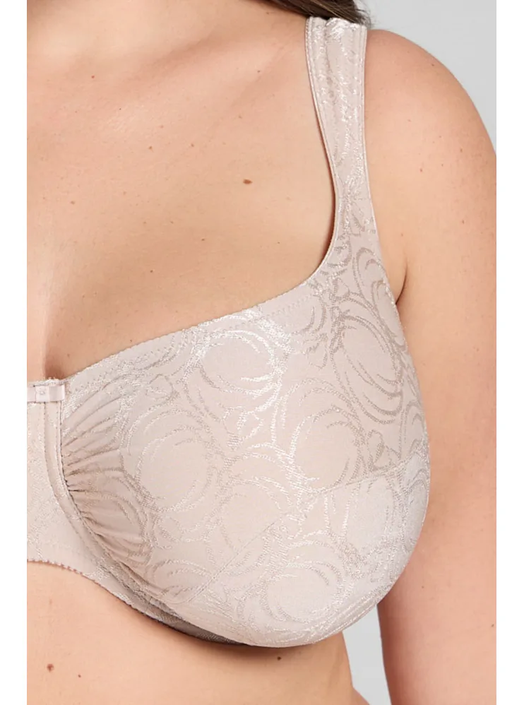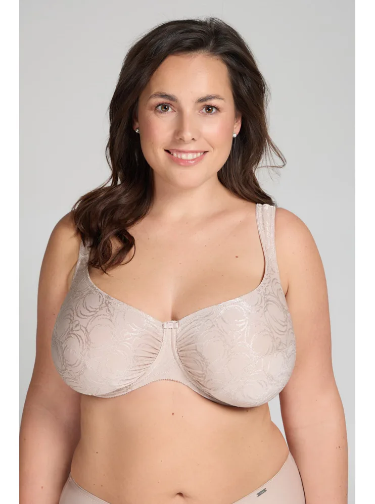 Dámská podprsenka Eiva v cappuccino barvě zaujme luxusním jemným žakárem. Nevyztužená podprsenka s flexi kosticemi ve střihu Comfy-Fit je perfektně uzpůsobena pro velká a těžká prsa. Dokonale se přizpůsobí vašim křivkám a prsa zafixuje na středu. Podložená široká ramínka pomáhají rovnoměrně rozložit váhu prsou, nikde netlačí a nezařezávají se. Zapínání má vzadu na háčky. Dopřejte si atraktivní spodní prádlo, ve kterém se budete cítit sebevědomě a komfortně.